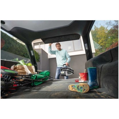 Dank der kompakten Bauweise ist das Gerät nicht nur handlich, sondern durch den 18-V-Akku (separat erhältlich) auch dort einsetzbar, wo keine Steckdose in der Nähe ist. Der lange, flexible Saugschlauch mit innen liegendem Reinigungsmittelschlauch garantiert zudem hohen Komfort, auch bei schwer zugänglichen Stellen.