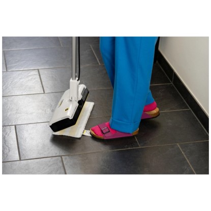 Das Set mit 2 saugstarken und strapazierfähigen Universal-Bodentüchern EasyFix Large passt optimal für den SC 1 Upright. Das textile Gewebe mit spezieller Schlingenstruktur sorgt für eine besonders gute Schmutzaufnahme. Die hohe Dampfdurchlässigkeit ermöglicht exzellente und hygienisch saubere Reinigungsergebnisse bis in Ecken und Kanten. Dank des Klettsystems lassen sich die Bodentücher leicht und schnell an der Bodendüse EasyFix des SC 1 Upright fixieren: einfach andrücken und fertig. Während der Arbeit bleibt das Tuch sicher positioniert und kann nicht verrutschen. Nach dem Reinigen lässt sich das benutzte Tuch ohne Schmutzkontakt abziehen: dazu auf die Fusslasche am Tuch treten und die Bodendüse nach oben wegziehen.