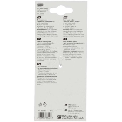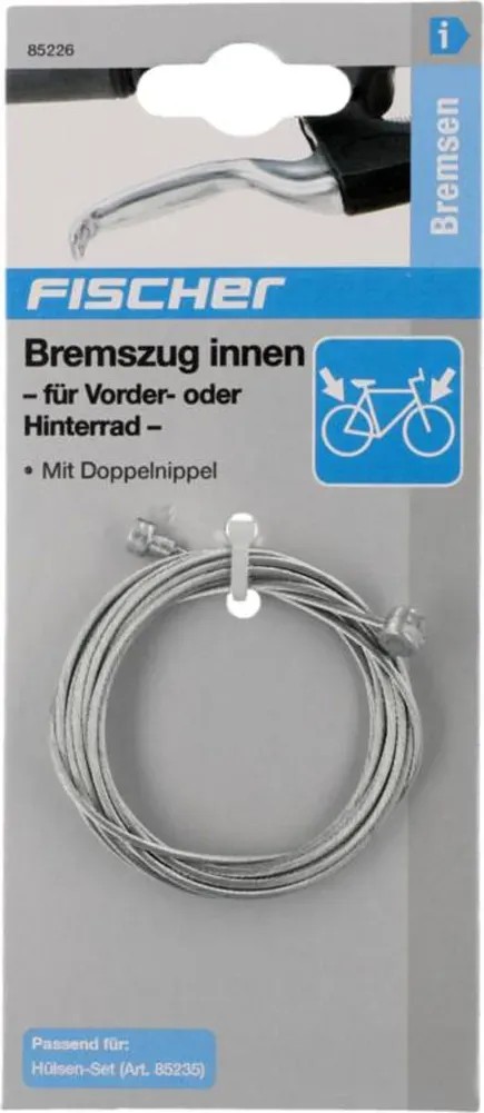 Der Fischer Brems-Innenzug ist aus hochwertigem Stahl gefertig und geeignet für das Vorder- oder Hinterrad. Inklusive Innenzug-Endkappe.