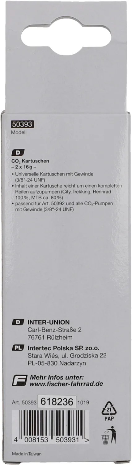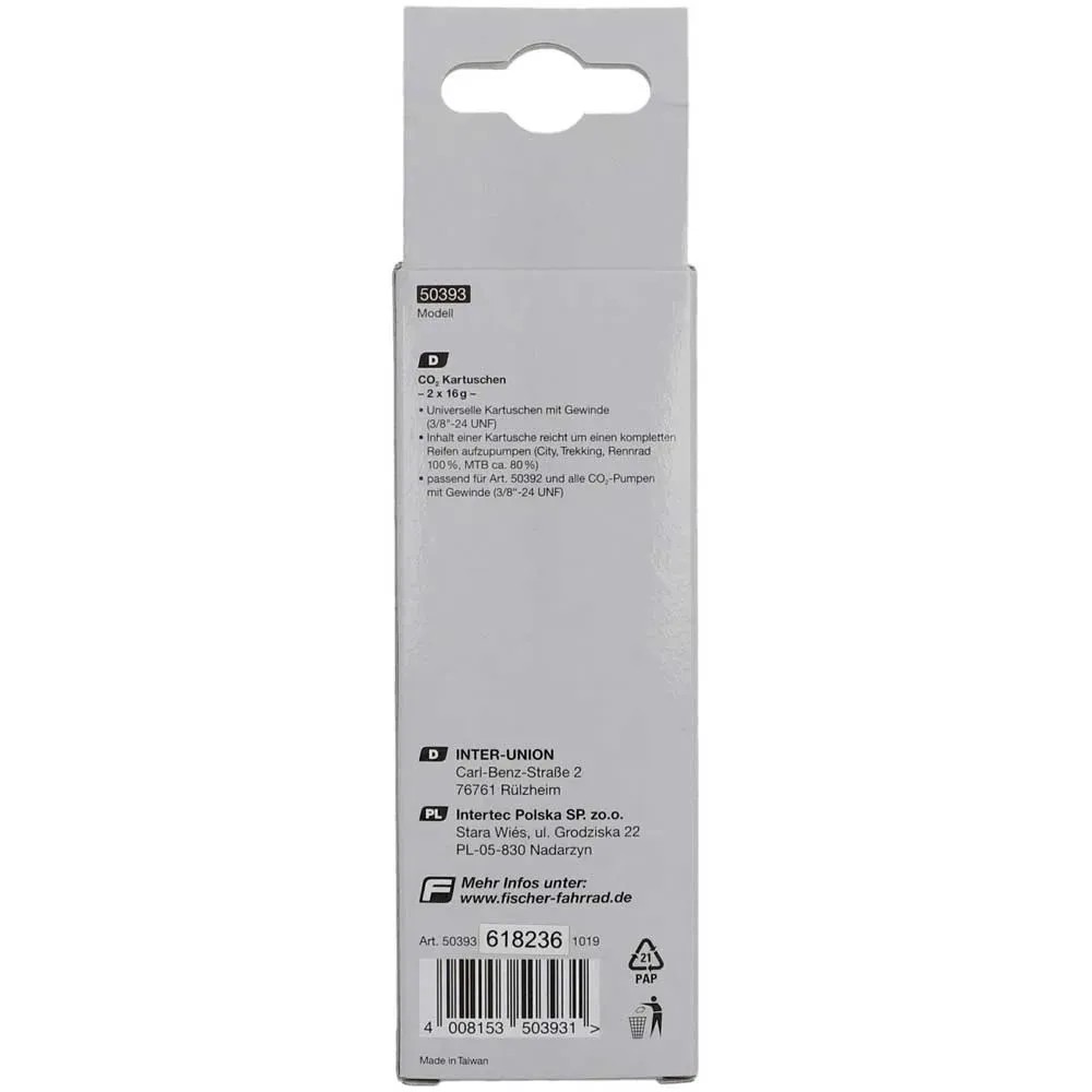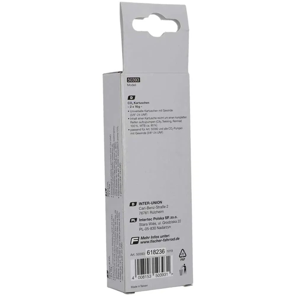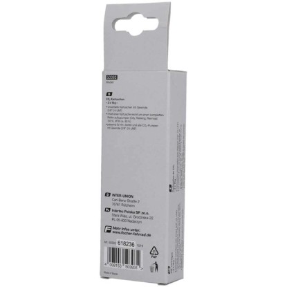 CO²-Kartuschen sind eine schnelle und praktische Variante, einen Reifen mit Luft zu füllen. Fischer bietet die Kartuschen mit einem praktischen Gewinde an. Der Inhalt einer Kartusche reicht, um einen Reifen aufzupumpen.