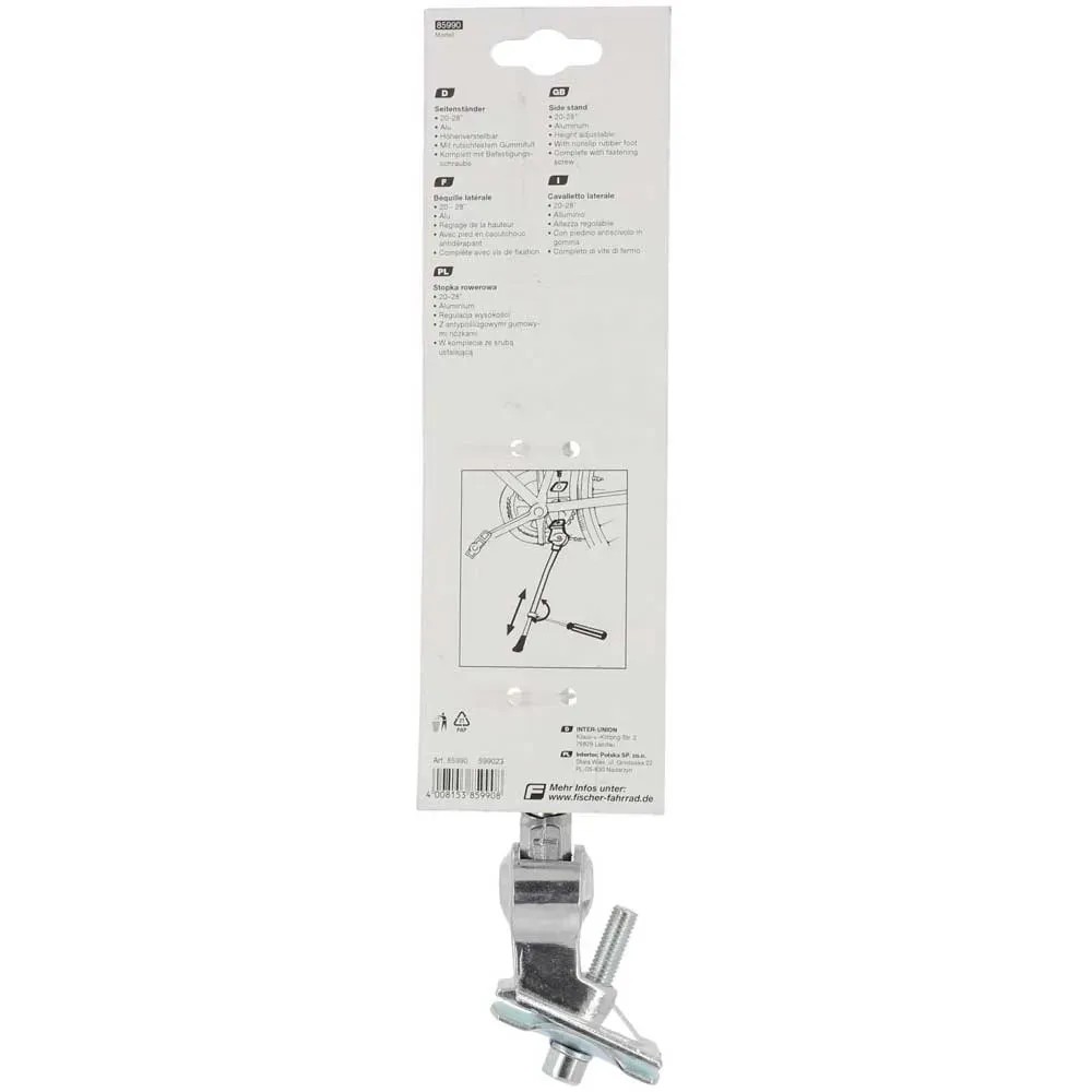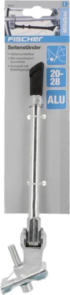 Der Fischer Seitenständer aus Aluminium ist höhenverstellbar und ausgestattet mit einem rutschfestem Gummifuss.