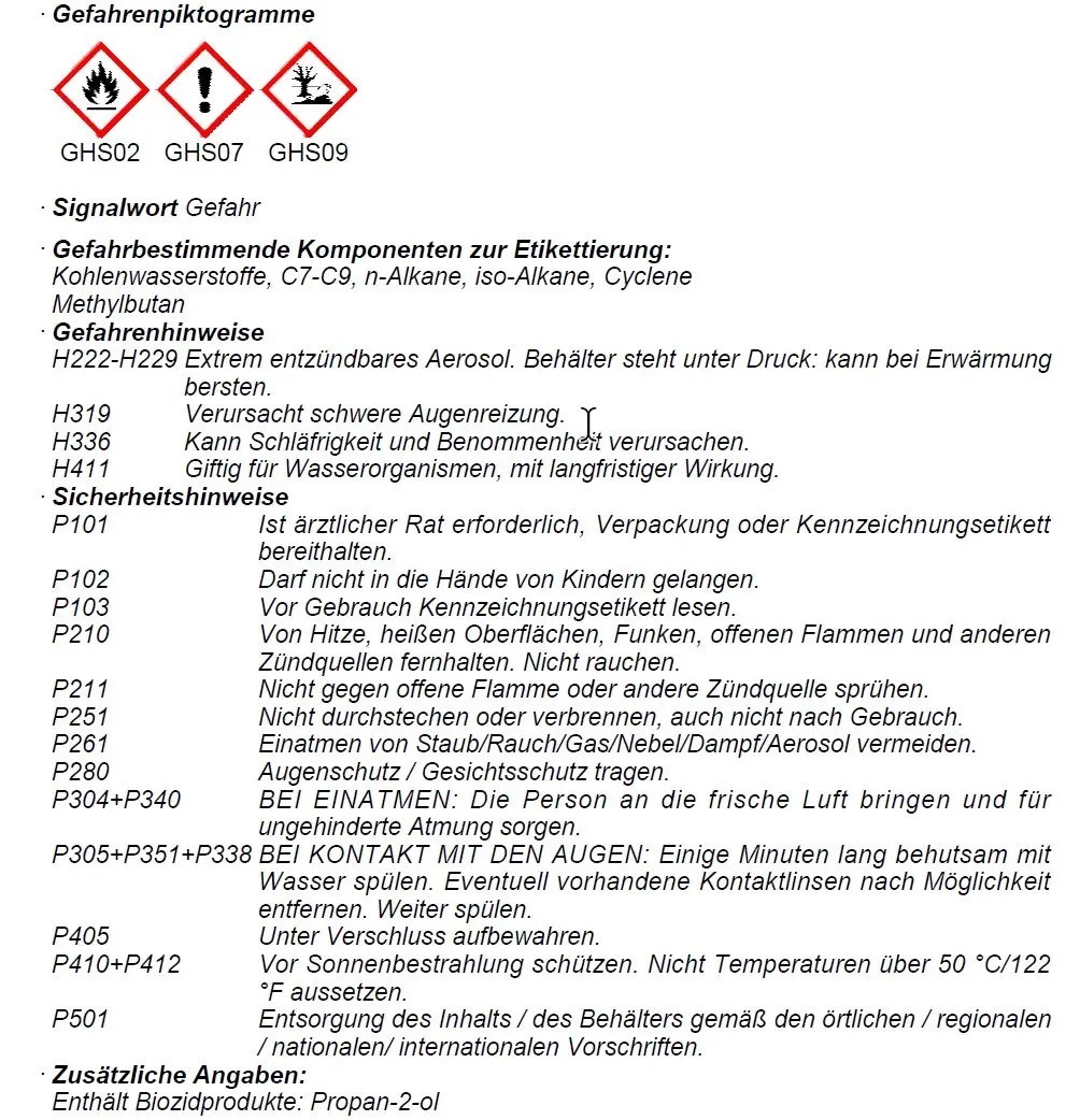 Hinweis: Dose vor Gebrauch schütteln.