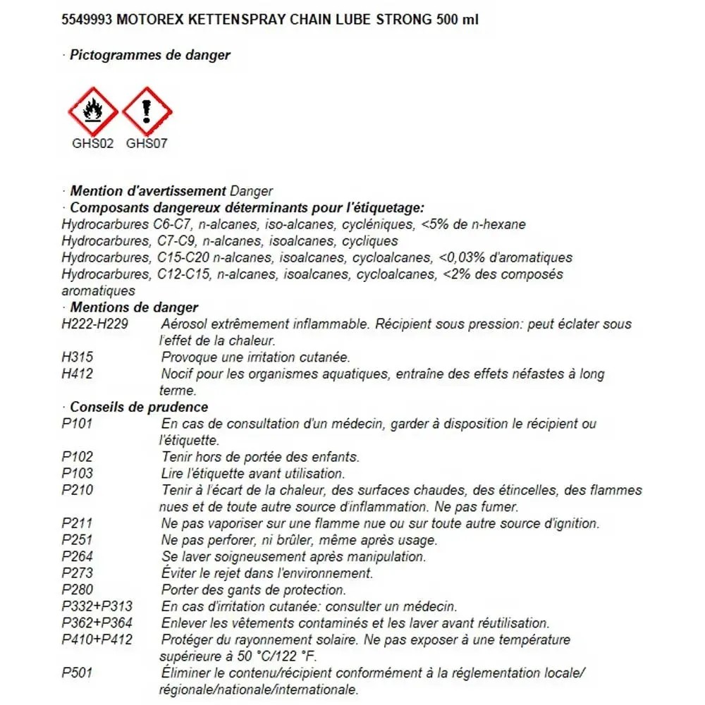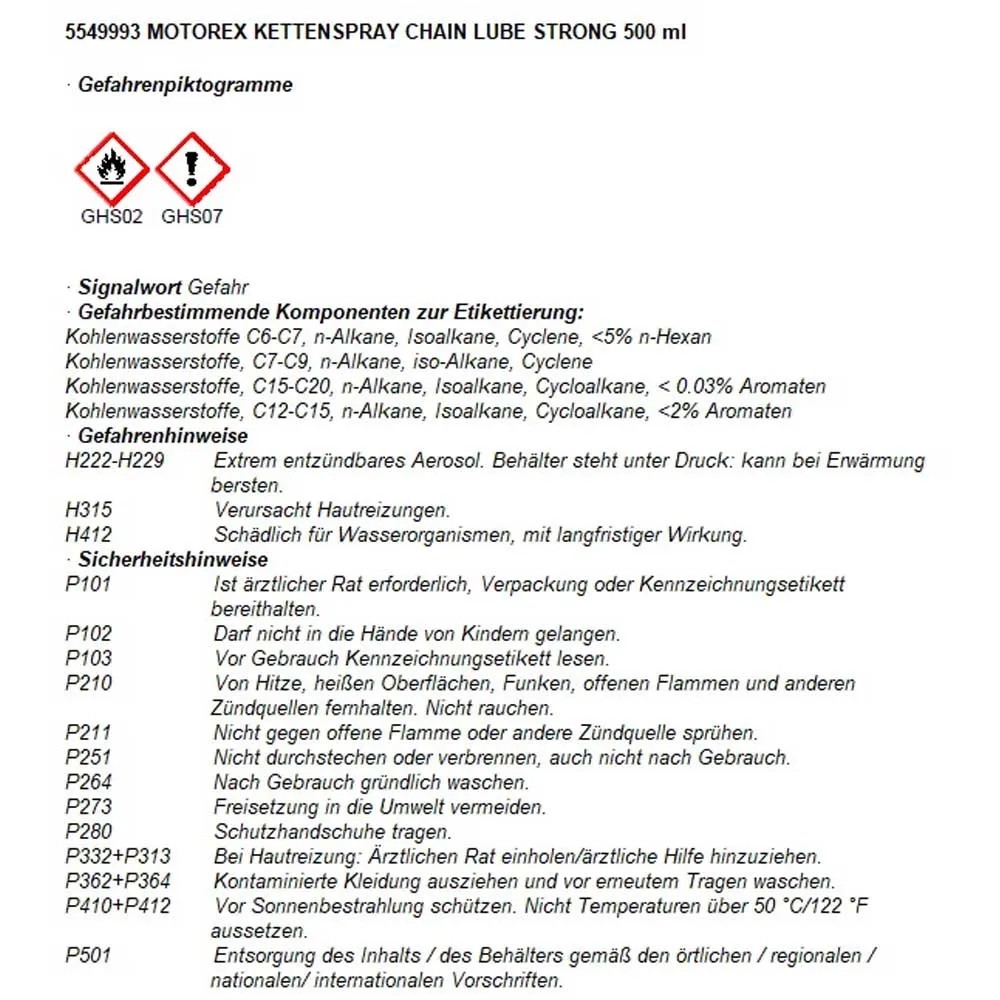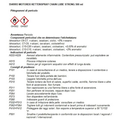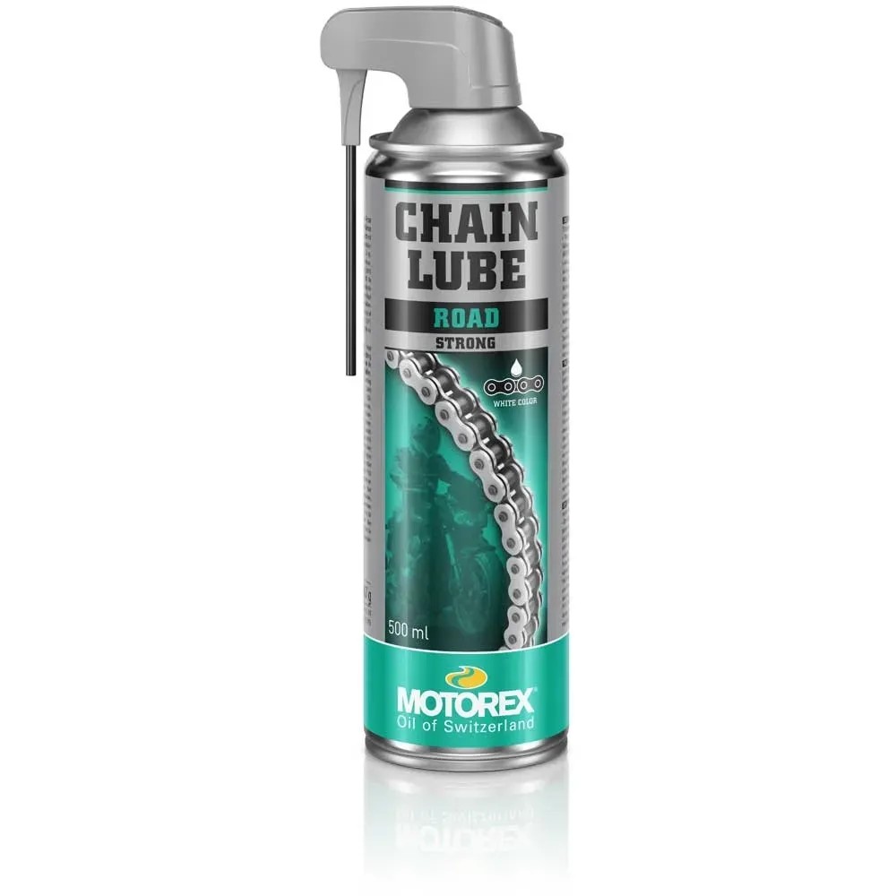 Das Kettenspray Chain Lube Strong von Motorex, ist ein weisser vollsynthetischer Kettenschmierstoff. Speziell für den Strasseneinsatz von Motorrädern. Es ist O-Ring und X-Ring geprüft und bildet einen äusserst hochdruckfesten und extrem haftfähigen Schmierfilm.