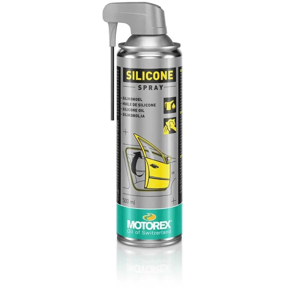 Das Silikonsspray von Motorex, ist ein Schmier-, Pflege- und Schutzmittel für Gummi-, Kunststoff- und alle Metallteile. Kunststoffteile erhalten Hochglanz und Gummiteile werden gepflegt und geschützt. Es ist temperaturstabil von -50 °C bis +200 °C, wirkt antistatisch, wasserabstossend und oxidationsverhütend.