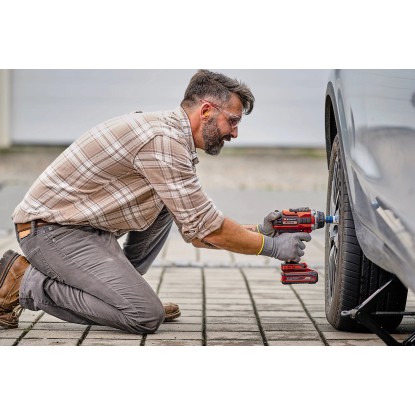 Der Einhell Akku-Schlagschrauber Impaxxo 18/400 dreht mühelos grosse oder lange Schrauben ein und schont, im Gegensatz zu Schlagbohrschraubern, im Einsatz die Gelenke des Heimwerkers. Als Mitglied der Power-X-Change-Familie kann jeder Akku der hochwertigen Systemreihe mit dem Schlagschrauber kombiniert werden.