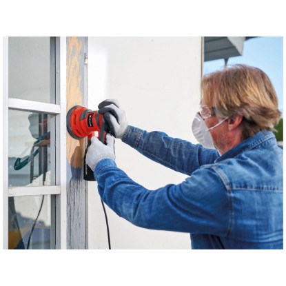 Der Exzenterschleifer TC-RS 425 von Einhell ist ein hochwertiger und kraftvoller Alleskönner, der höchste Ergonomie mit maximaler Funktionalität verbindet, um Oberflächen einen guten Schliff zu verpassen. Experten schätzen das einhändig geführte Gerät als unverzichtbaren Helfer beim Schleifen von Holz, Kunststoff und Metall, der seine Qualitäten besonders an schwer zugänglichen und kleineren Flächen voll ausspielt. Dank seiner ergonomischen Griffflächen liegt der Elektro-Handschleifer perfekt in der Hand und lässt sich präzise führen, um einwandfreie Schleifergebnisse zu erzielen. Der Exzenterschleifer ist mit einem Klettsystem ausgestattet, mit dem sich Schleifpapiere in Sekundenschnelle wechseln lassen und faltenfrei an der Schleifplatte anliegen. Die Staubfangbox mit integriertem Filter ermöglicht sauberes, nahezu staubfreies Arbeiten - so bleibt die Luft rein und das Schleifpapier scharf. Nach vollbrachter Arbeit lässt sich das aufgewickelte Kabel per Kabelclip fixieren, sodass der Exzenterschleifer im Handumdrehen ordentlich verstaut ist.