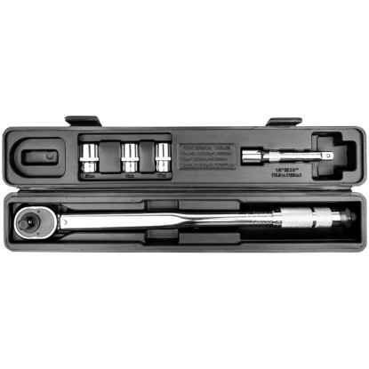 Dieses fünfteilige 1/2"-Drehmomentschlüssel-Set von Güde darf bei keinem Heimwerker fehlen. Das Set beinhaltet einen 1/2"-Drehmomentschlüssel, drei Steckschlüsseleinsätze (Grösse 17, 19 und 21 mm) und eine 125-mm-Verlängerung.