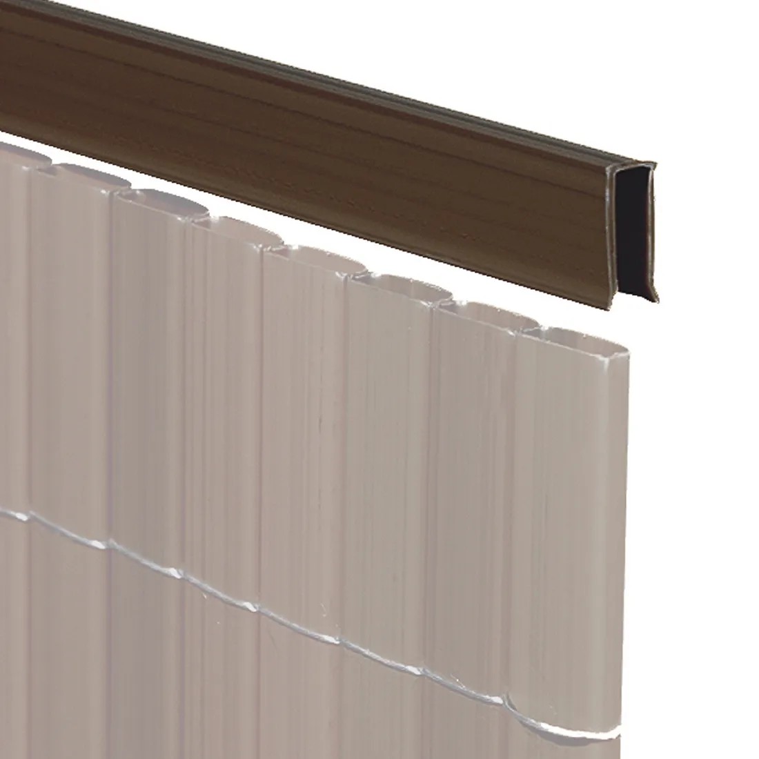 Das Abdeck U-Profil besteht aus UV-beständigem Kunststoff. Es ist zum einfachen Aufstecken auf Kunststoff- Sichtschutzmatten gedacht. Somit ermöglicht es einen sauberen, optisch ansprechenden Abschluss der Matten und schützt diese gleichzeitig vor Frostschäden durch Wassereinschluss.