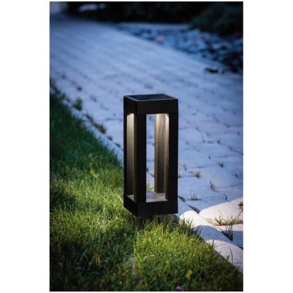 Diese praktische Eglo LED-Solarleuchte mit Erdspiess verfügt über ein schlichtes Design sowie klare Formen. Mit ihrem modernen Look sorgt sie für Aufsehen und kann dank dem angebrachten Erdspiess ganz einfach im Boden in Ihrem Garten platziert werden. Da ihr Lichtschein nach unten strahlt, eignet sich die Solarleuchte ideal für kleine Wege und moderne Gartengestaltungen.