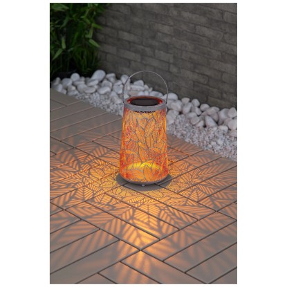 Die LED-Laterne spendet ein angenehmes warmweisses Licht mit 2'000 Kelvin. Sie ist dank IP44-Schutzklasse wetterfest und kann im Freien verwendet werden. Die Laterne aus Metall hat eine Höhe von 24 Zentimetern sowie einen Durchmesser von 14,6 Zentimetern und ist perfekt für eine stimmungsvolle Abendbeleuchtung im Garten oder auf der Terrasse.