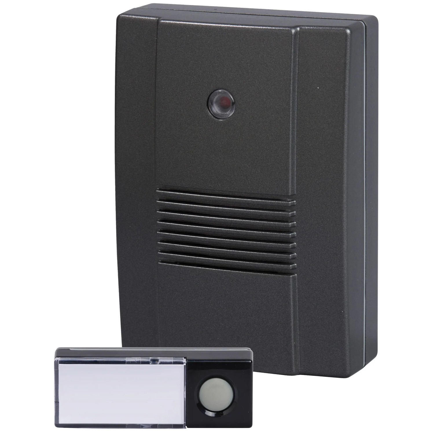 Funkgong-Set mit akustischer Rufsignalisierung. Der Sender verfügt über eine Reichweite von max. 150 m und kann im Aussenbereich angeschraubt werden. Empfänger mit Gürtelclip und Wandhalterung. 8 Melodien und 256 selbstlernende Frequenzen. Klingeltaster Empfängerbatterien nicht enthalten (2 x 1,5 V LR6 / Mignon). Senderbatterie 1 x 3 V CR2032 Batterie.