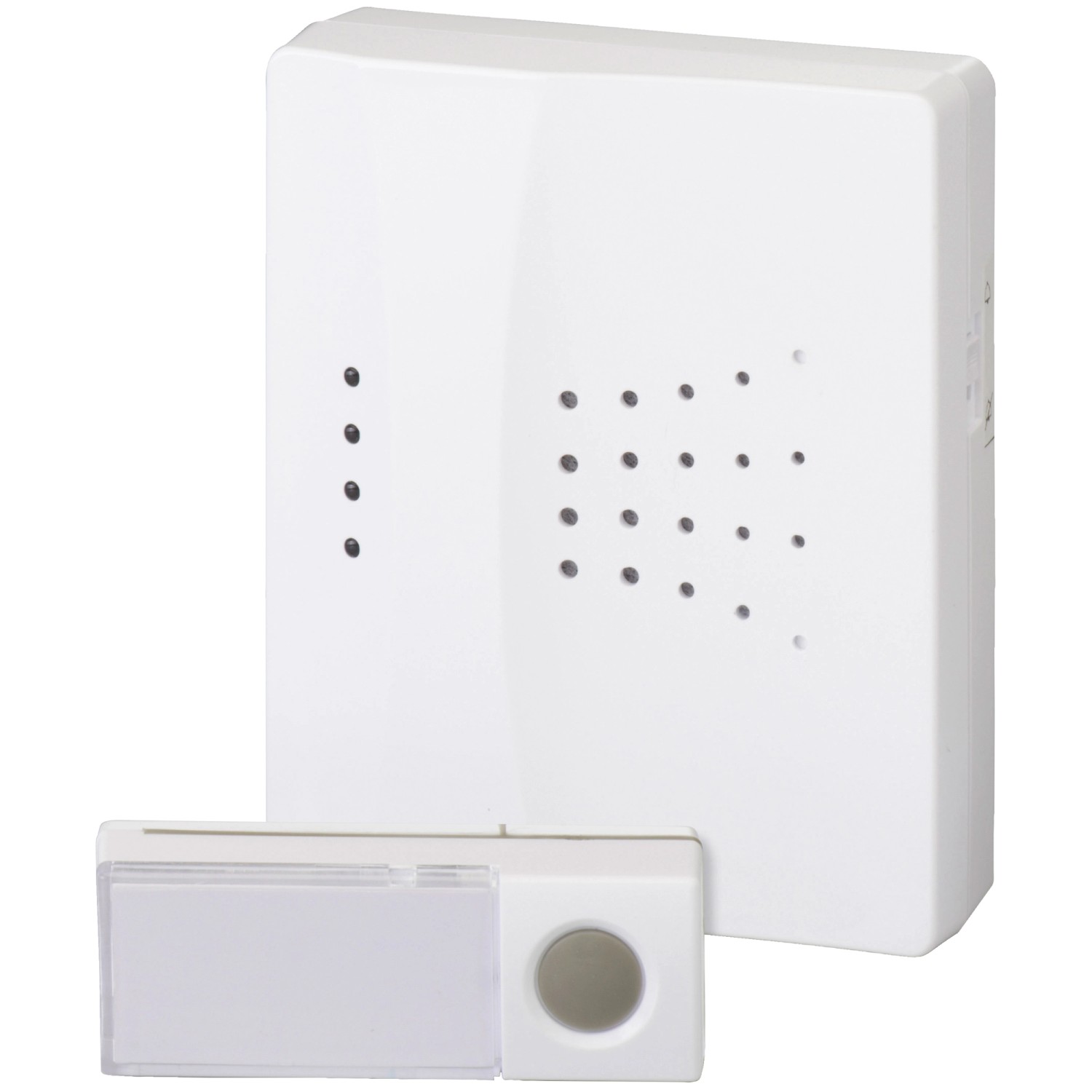 Funkgong-Set mit akustischer und optischer Rufsignalisierung (Blitzlicht). Der Sender verfügt über eine Reichweite von max. 150 m und kann im Aussenbereich angeschraubt werden. 8 Melodien und 256 selbstlernende Frequenzen. Klingeltaster Empfängerbatterien nicht enthalten (2 x 1,5 V LR6 / Mignon). Senderbatterie 1 x 3 V CR2032 Batterie.