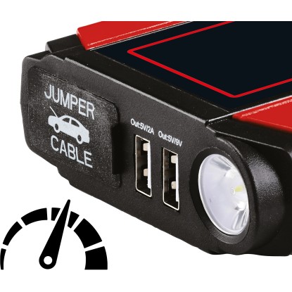 Die Einhell CE-JS 18 Jump-Start Power Bank ist eine kompakte und handliche Starthilfe sowie Energiestation und damit ein idealer Begleiter in jedem Fahrzeug. Mit nur einem Gerät können sowohl leere Autobatterien überbrückt als auch mobile Stromverbraucher wie Handy, Laptop, Kamera, usw. schnell und einfach aufgeladen werden. Der leistungsstarke Lithium-Polymer-Akku mit einer Kapazität von 3 x 6000 mAh sorgt dabei jederzeit für ausreichend Leistung. Die integrierte LED-Arbeitsleuchte bietet zusätzlich grossen Nutzen. Folgende Anschlüsse sind integriert: 5 V /2 A USB, 12 V / 10 A und 19 V / 3,5 A Speed Charging. Lieferung inklusive einem 230-V-Ladenetzteil sowie einer praktischen Schutz- und Aufbewahrungstasche.