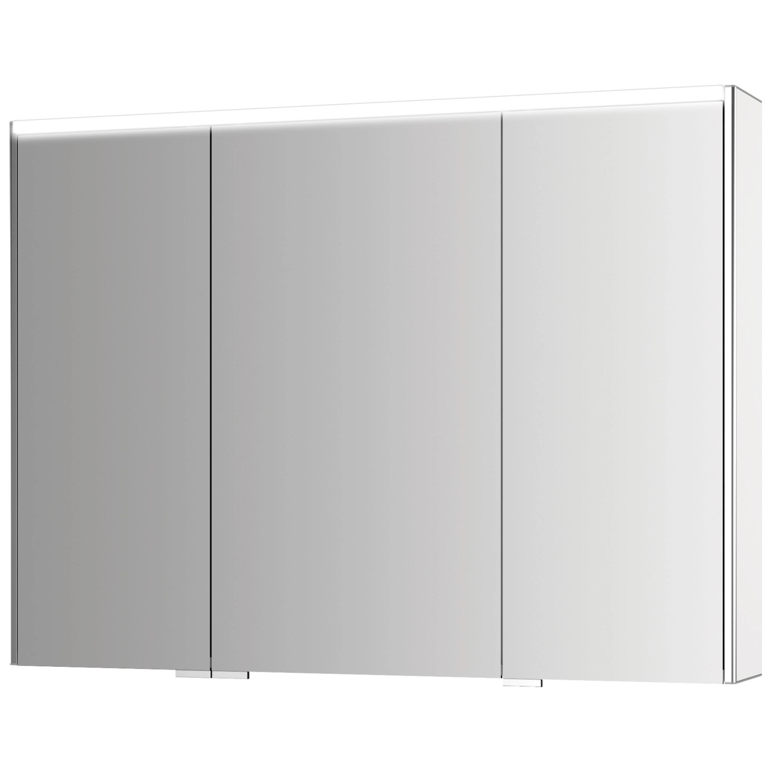 Der Jokey Spiegelschrank Dekor Alu III LED ist aus eloxiertem Aluminium gefertigt und passt sich mit seinen seitlichen Dekorblenden - wahlweise in Weiss, Eiche Trüffel oder Spiegel - perfekt in jedes Bad-Design ein. Für echten Bad-Komfort sorgen ausserdem 3 Doppelspiegeltüren aus Kristallglas, verstellbare Glas-Einlegeböden, eine Elektrobox mit Steckdose und Schalter sowie ein LED-Light-Strip.