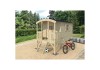 Das Pletscher Stelzenhaus Kevin besteht aus einem Bausatz mit vorgefertigten Elementen aus 16 mm starker unbehandelter Fichte Natur. Die Podesthöhe beträgt 70 cm.