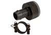 Das Adapter-Stück ist für Wasserhähne mit 26,5 mm (G 3/4)-Gewinde und 33,3 mm (G 1)-Gewinde sowie für 19 mm (3/4")-Schläuche geeignet. Die beigefügte Schlauchklemme dient der Schlauchfixierung.