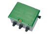 In der Gardena Ventilbox V3 können entweder drei Bewässerungsventile 24 V oder drei Bewässerungsventile 9 V unterirdisch eingebaut werden. Die Wasserzufuhr kann wahlweise von drei Seiten erfolgen.