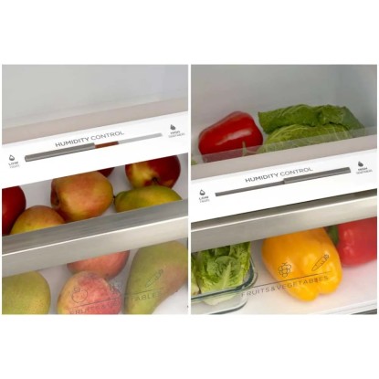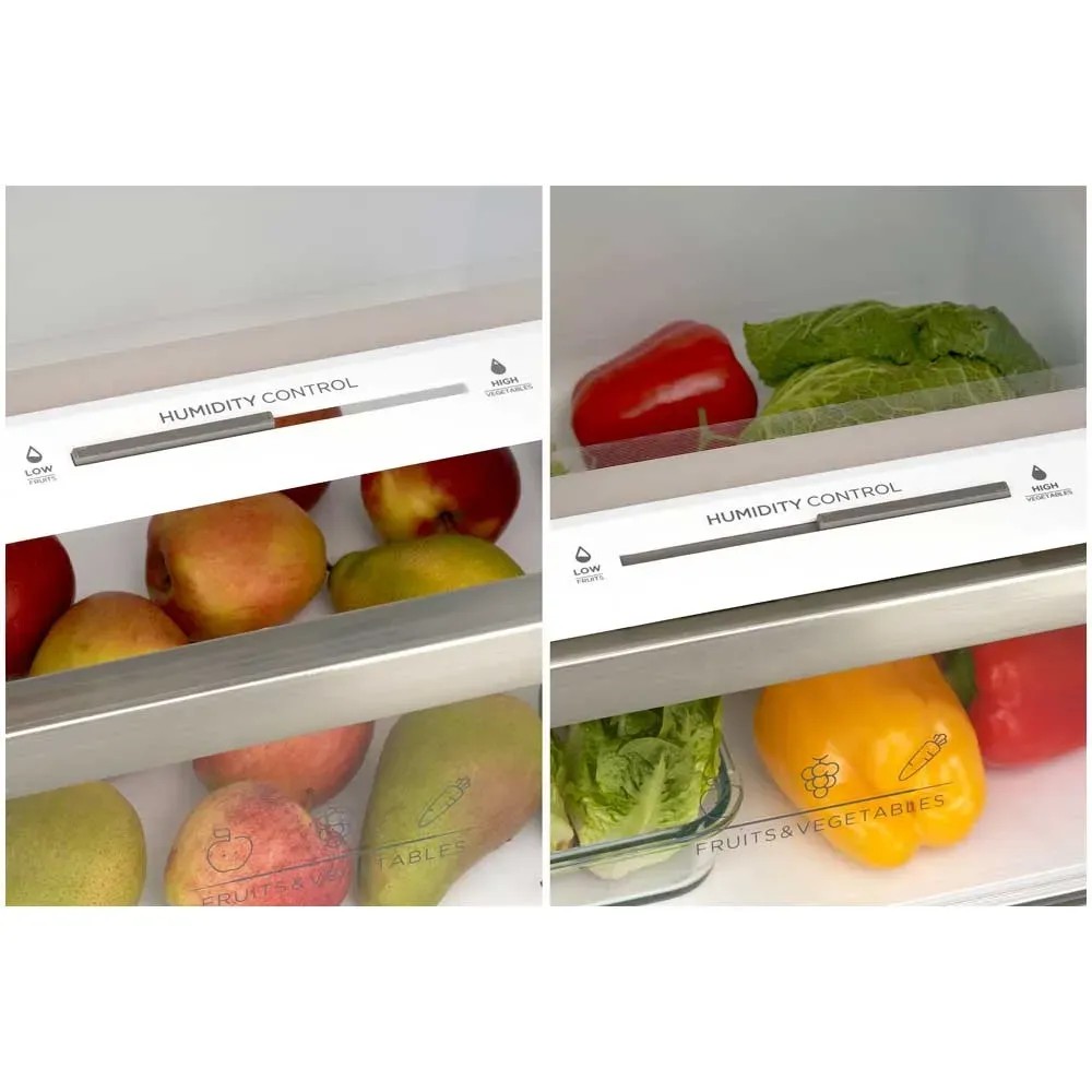 Mit den in den Ablagen integrierten Schiebereglern kann die Umgebung noch individueller den zu lagernden Produkten angepasst werden. Diese versorgen nämlich die Flächen mit mehr oder weniger Feuchtigkeit. So wird auch aktiv die Lebensmittelqualität erhalten und die Energieersparnis unterstützt.
