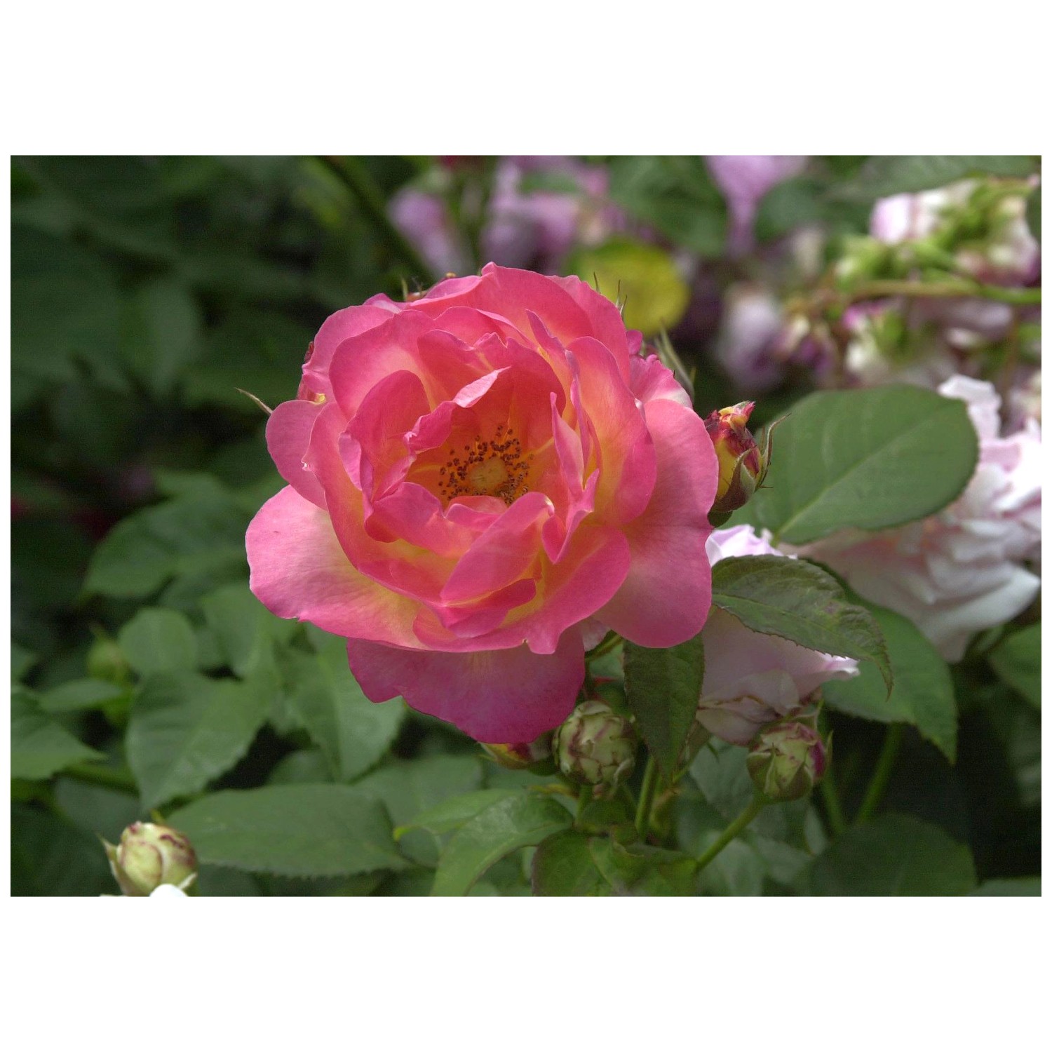 Die öfterblühende Strauchrose Firlefanz (Rosa St Hybrida) ist eine faszinierende Rarität im Rosengarten, die mit ihrer bunten Farbenpracht begeistert. Ihre Blüten zeigen ein lebhaftes Spektrum von Gelb über Orange bis hin zu Rosarot und schaffen ein harmonisches Farbenspiel, das immer wieder überrascht. Die grossen, locker gefüllten Blüten erscheinen in kleinen Büscheln und setzen sich schön vom gesunden Laub ab. Sie eignet sich auch hervorragend für die Pflanzung in Kübeln, wo sie jeden Standort aufwertet. Die aktuelle Pflanzhöhe bei Versand inkl. Topf beträgt 15 - 40 cm. Die maximale Wuchshöhe beträgt 200 cm.