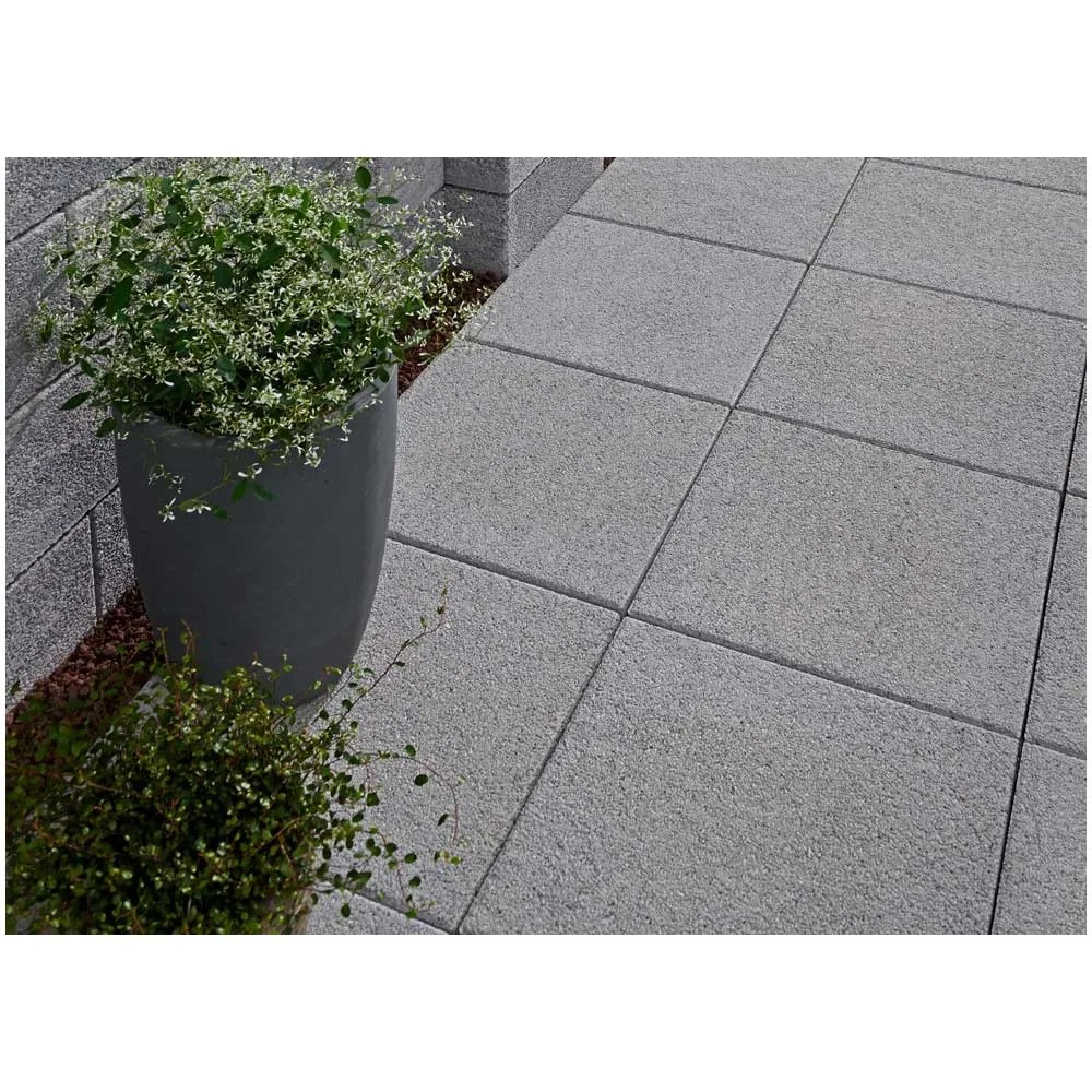 Die Platte Rom ist nicht nur praktisch, sie wirkt auch durch ihre moderne graue Farbgebung und der dunklen Natursteinkörnung sehr elegant und dekorativ. Die wassergestrahlte Oberfläche bietet optimale Trittsicherheit und kann beispielsweise auch mit den Gartenplatten Vicenza oder Mailand als farblicher Kontrast kombiniert werden.Bedarf: 6,25 Stück / m²