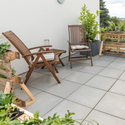 Terrassenplatten aus Beton sind robust und pflegeleicht sowie sehr witterungs- und frostbeständig. Regenwasser wird über die Fugen und den richtigen Unterbau wieder dem Grundwasser zugeführt. Die tragende Kernbetonschicht ist der Hauptbestandteil der Beton-Terrassenplatte und stützt die am Ende sichtbare Vorsatzschicht, die den optischen Eindruck bestimmt.Pflege für Betonsteinplatten