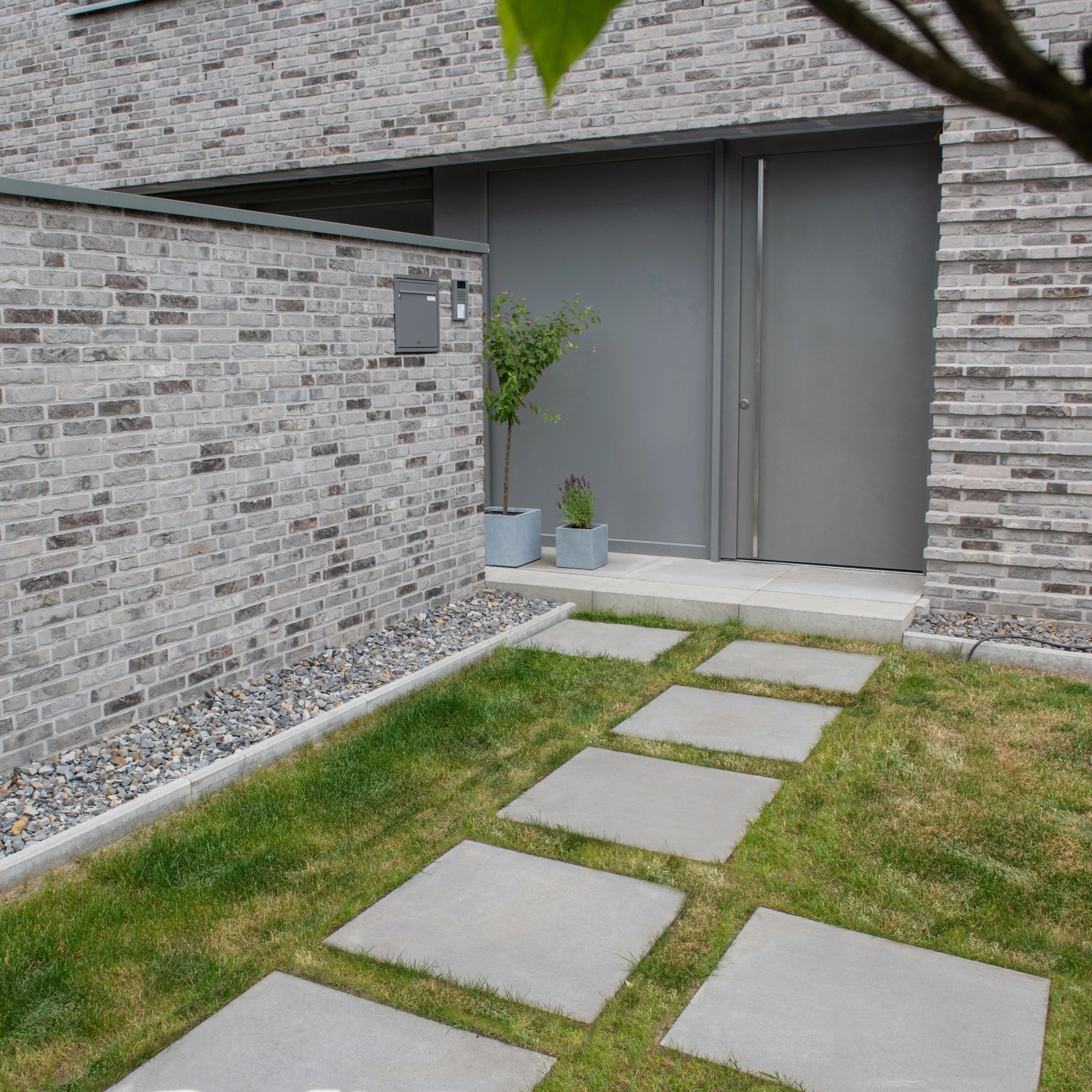 Die Gehwegplatte verschönert Terrassen, Balkone oder Gehwege. Der Bodenbelag besteht aus Beton und passt zu jedem Ambiente. Durch die ebene Oberfläche und die leicht gefasten Kanten entsteht ein harmonisches, einheitliches Fugenbild.