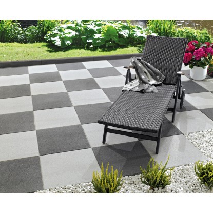 Das Zusammenspiel des grossen Plattenformats und der feingestrahlten Oberfläche mit leichtem Glimmereffekt wirkt grosszügig. Die modernen Grautöne verleihen Terrassen, Grillplätzen und Gartenwegen einen stilvollen Touch. Die Gartenplatte ist strapazierfähig und dank ihrer leicht sandigen Oberflächenstruktur auch bei Nässe griffig und trittsicher. Daher ist sie auch für Schwimmbadbereiche geeignet.