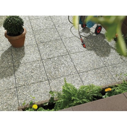 Die bewährten Betonplatten mit runder, mehrfarbiger Rheinkies-Körnung und gewaschener Oberfläche sind als Flächenbelag für Gehwege und Terrassen geeignet. Die natürliche Farbgebung der Kieselsteine vermittelt ein gefälliges Erscheinungsbild.