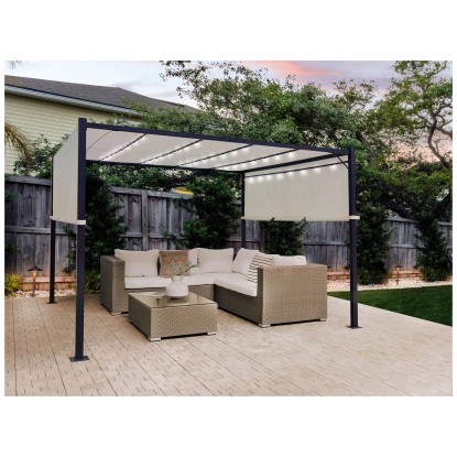 Beliani Pergola mit LED-Beleuchtung Parga Stahl Beige 310 x 310 cm