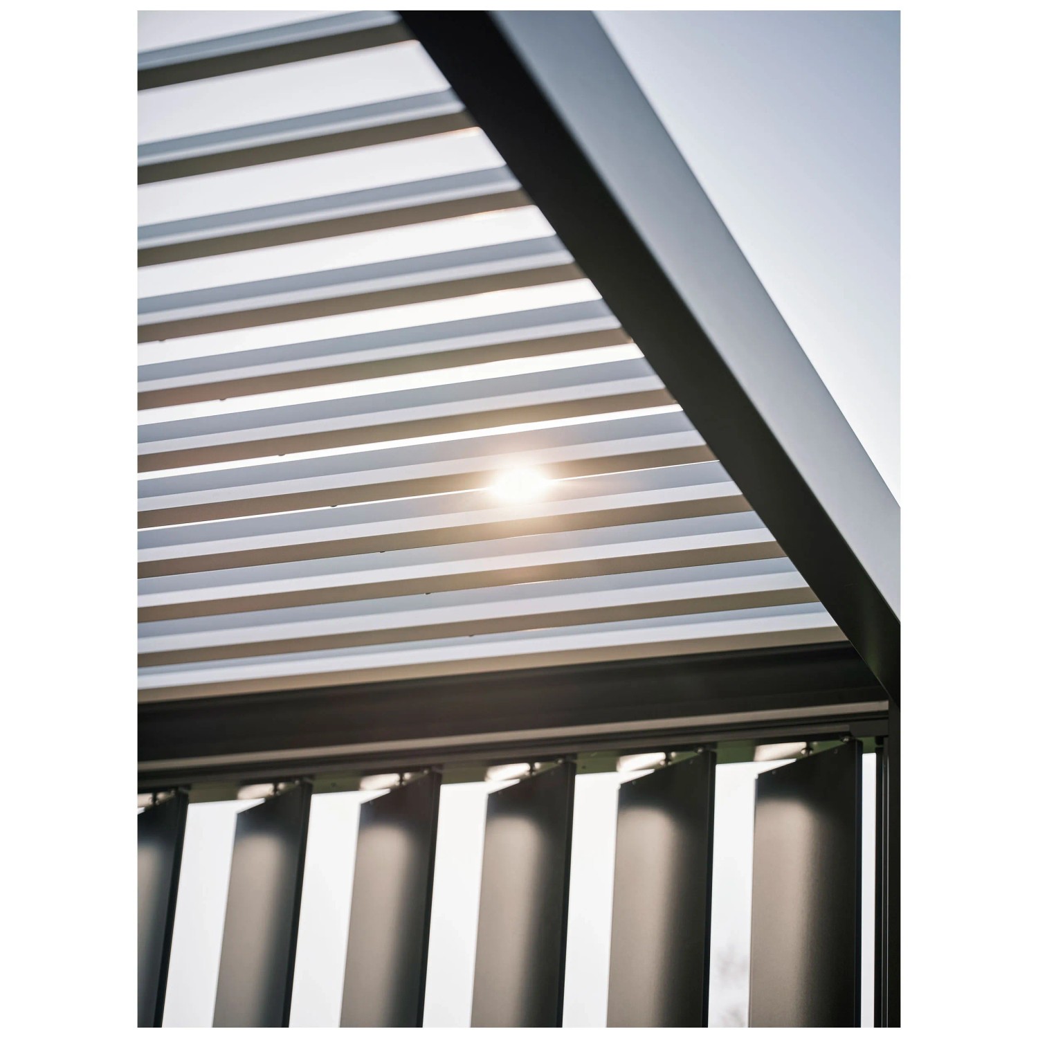Die Biohort Lamellenseitenwand in Metallisch-Quarzgrau für die Pergola der Grösse 3 m ist die ideale Ergänzung für Ihren Aussenbereich. Sie ist manuell verstellbar und bietet zuverlässigen Schutz vor Wind und Wetter. Die Seitenwand ist nachträglich montierbar.