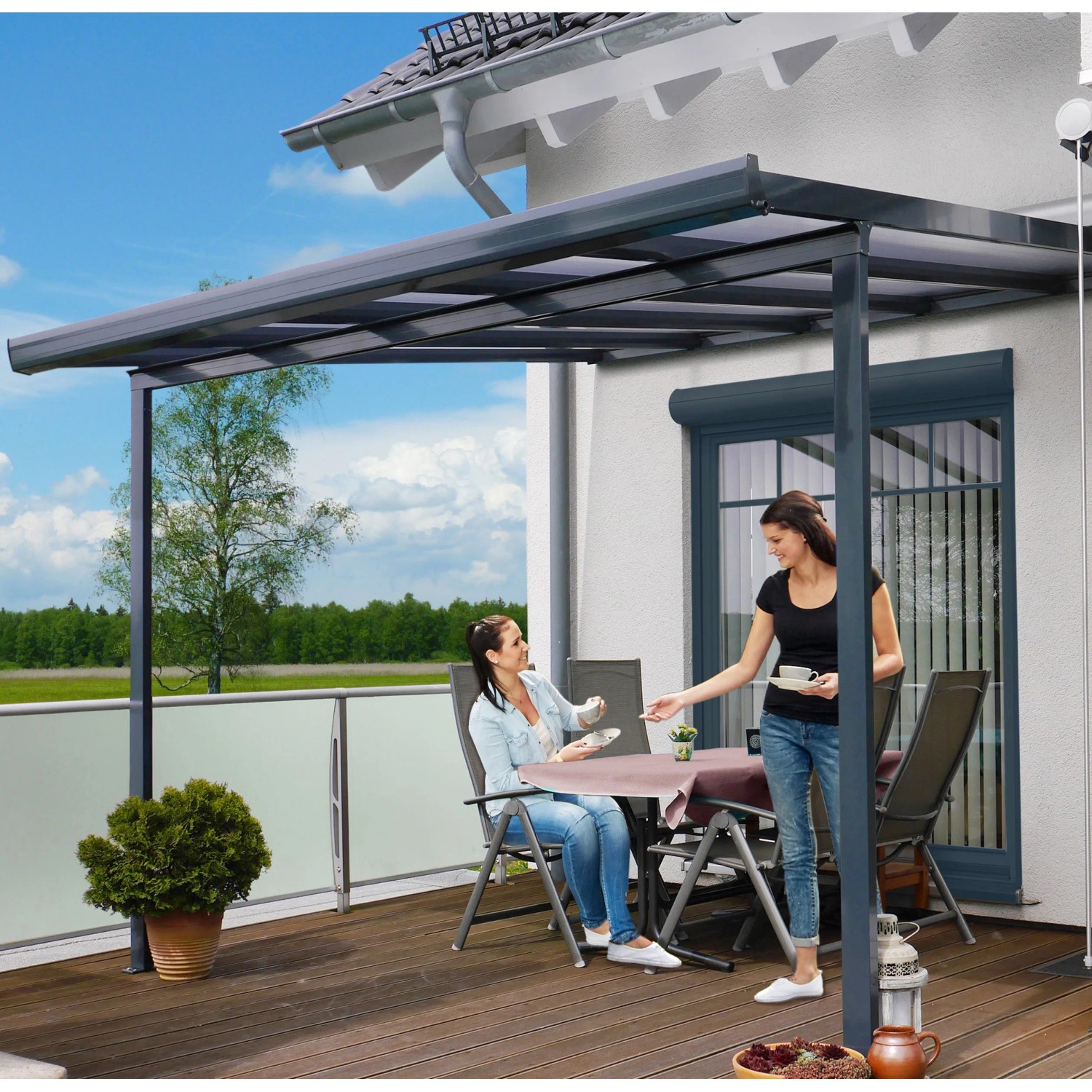 Terrassen-Überdachung Bausatz Anthrazit 306 x 406 cm