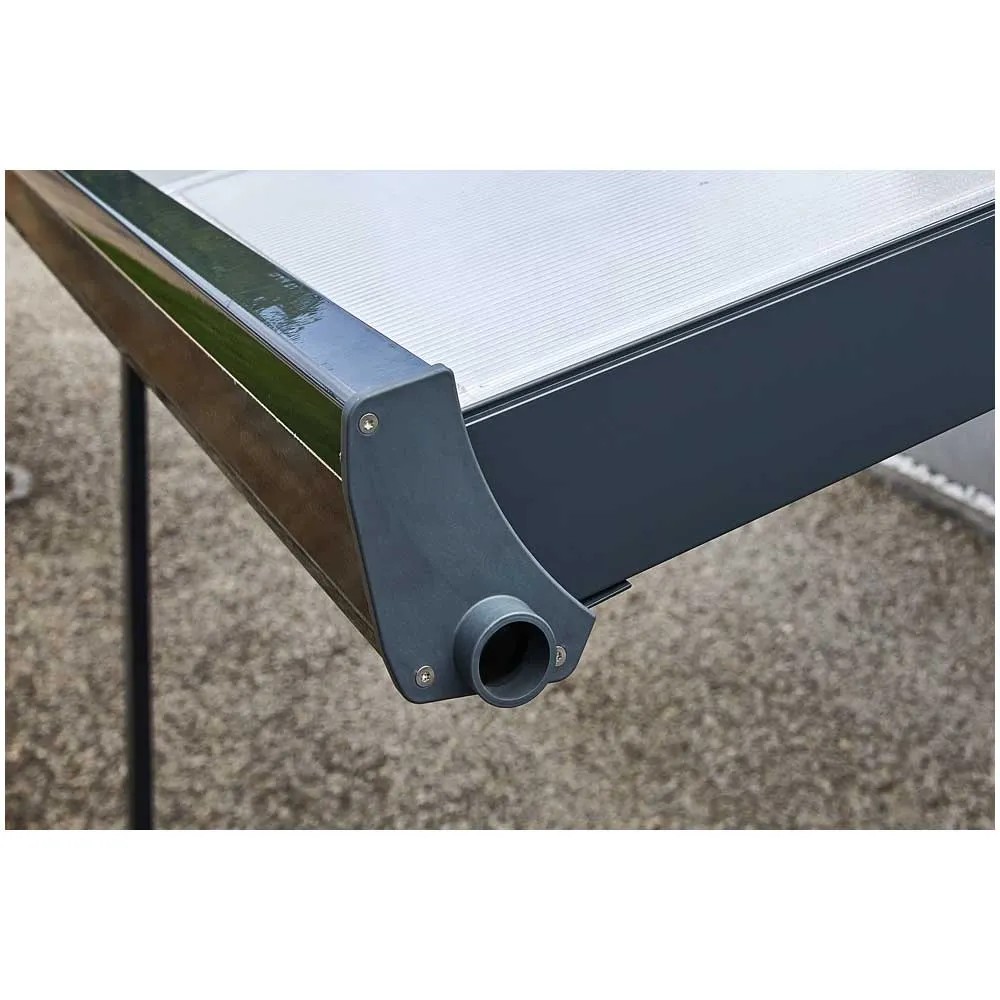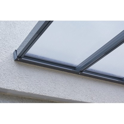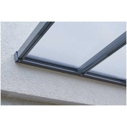 Mit dem Gutta Bausatz für eine Terrassenüberdachung in Anthrazit und etwas handwerklichem Geschick ist der Traum vom überdachten Aussensitzplatz so nah wie noch nie. Die langlebige, stabile Konstruktion bietet alle Möglichkeiten für solide Dachkonstruktionen rund ums Haus.Die pulverbeschichtete Aluminiumkonstruktion mit einem transparenten Dach aus Polycarbonat-Hohlkammerplatten, die zur Befestigung einfach in den Sparren eingeklickt werden, macht alles mit und hält Wind und Wetter Stand. Zugleich wirkt das Dach dank seiner schmalen Profilquerschnitte besonders filigran und schlank.Zusätzliche Möglichkeiten bietet das separat erhältliche Erweiterungsmodul von 120 cm Breite. Damit können Sie das Dach theoretisch unendlich erweitern - beispielsweise als Carport über die gesamte Gebäudelänge hinweg, als Unterstellplatz oder als Hofüberdachung.Das Dach ist sehr einfach zu montieren und die Dachneigung variabel einstellbar, da die Firsthöhe um bis zu 20 cm und die Position der Trägerpfosten in zwei Richtungen um jeweils bis zu 60 cm verstellbar ist. Das Dach trägt eine Schneelast bis 150 kg/m².