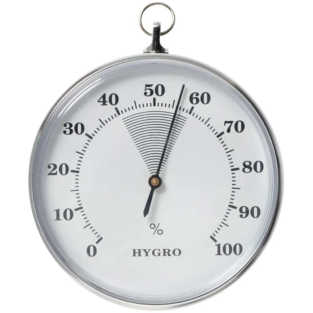 Das analoge Hygrometer von Möller Therm zeigt die Luftfeuchtigkeit in Ihrem Zuhause an. Mit seiner runden und grossen Anzeige ist es einfach abzulesen. Das Hygrometer benötigt keine Batterien und ist einfach zu bedienen. Mit seinen kompakten Massen passt es perfekt in jeden Raum und ist ideal für die Kontrolle des Raumklimas.