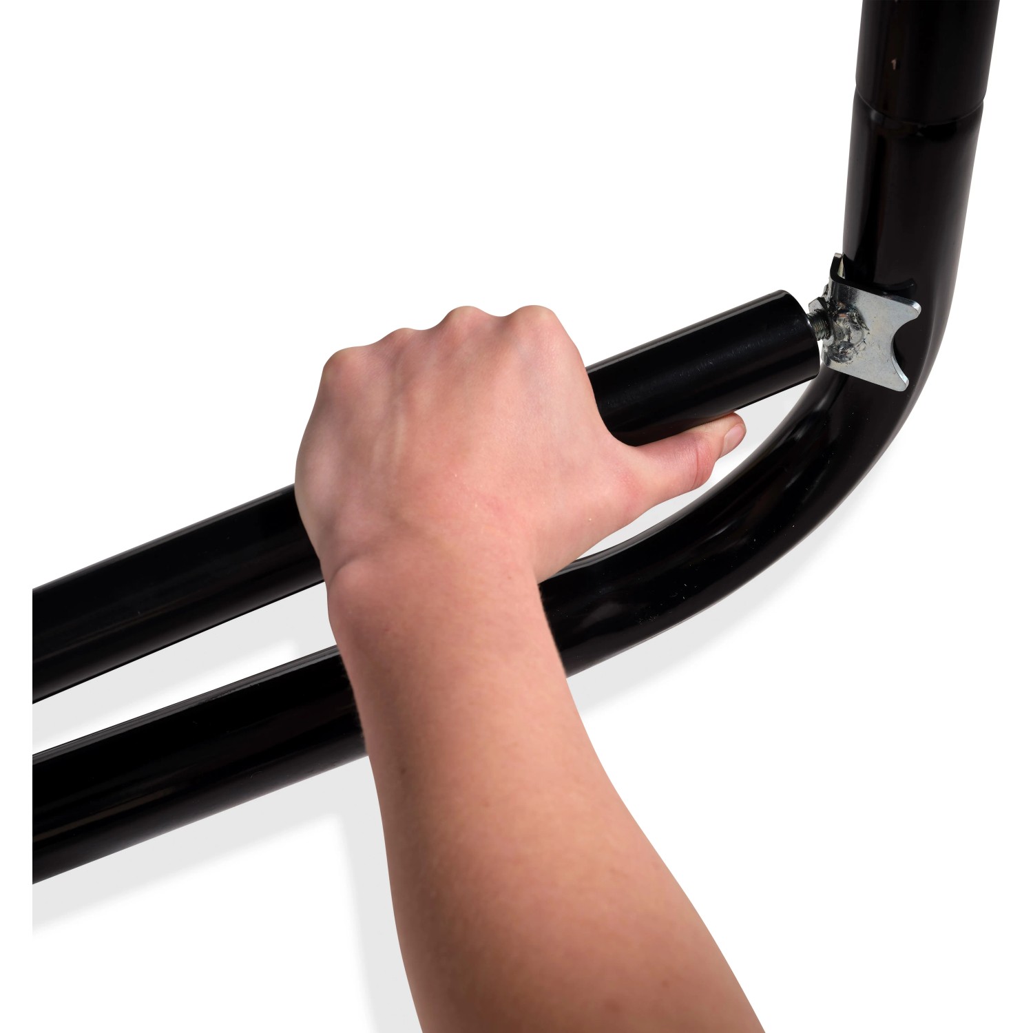 Der Exit Mähroboter-Stopper M ist eine Blockade, die am Trampolin befestigt wird, damit der Mähroboter den Rasen rund um das Trampolin und darunter gut mähen kann, ohne dabei das Trampolin zu berühren. Der Stopper ist ein Metallrohr mit Gewinde, das zwischen den Trampolinfüssen festgeklemmt wird. Dank dem Gewinde ist das Rohr höhenverstellbar. Daher sitzt es immer stabil zwischen den Füssen. Mit dem Mähroboter-Stopper M bestimmen Sie selbst, ob Sie das ganze Trampolin oder nur die Füsse blockieren wollen. Werden nur die Füsse blockiert, dann erreicht der Mähroboter gut den Rasen unter dem Trampolin. Möchten die Kinder gerade dann auf dem Trampolin springen, wenn der Mähroboter in Betrieb ist? Entscheiden Sie dann, das ganze Trampolin zu blockieren. Der Stopper wird in einem 2er-Set verkauft. Er ist für Trampoline von Exit und auch andere Trampoline mit W-Füssen geeignet, bei denen der Abstand zwischen den Füssen zwischen 60 und 120 cm liegt. Die Masse des Trampolins bestimmen, wie viele Sets Sie brauchen, um die Füsse oder das ganze Trampolin zu blockieren: