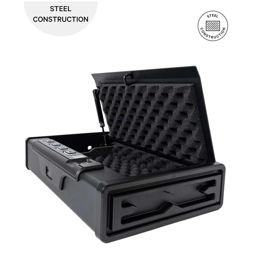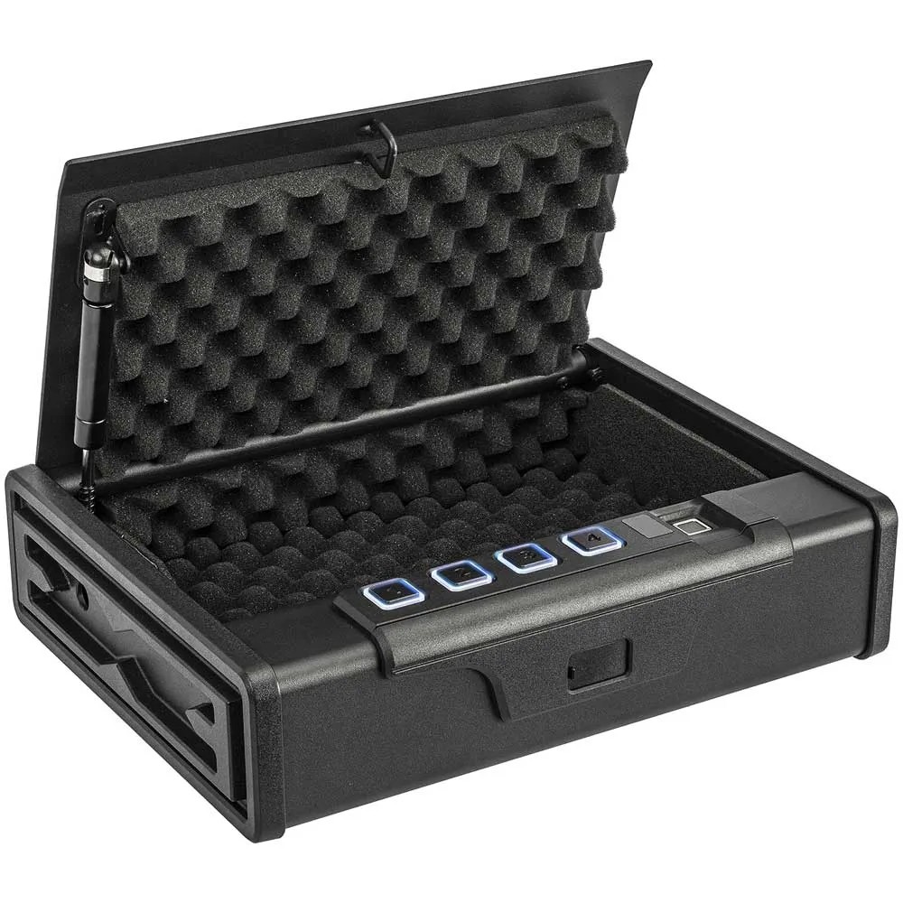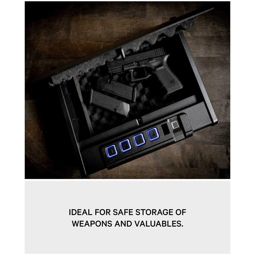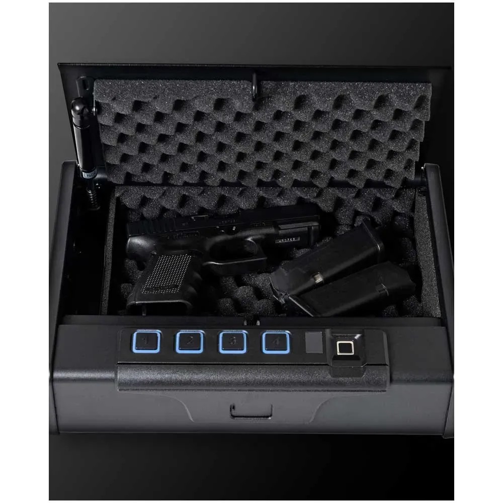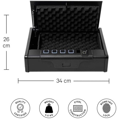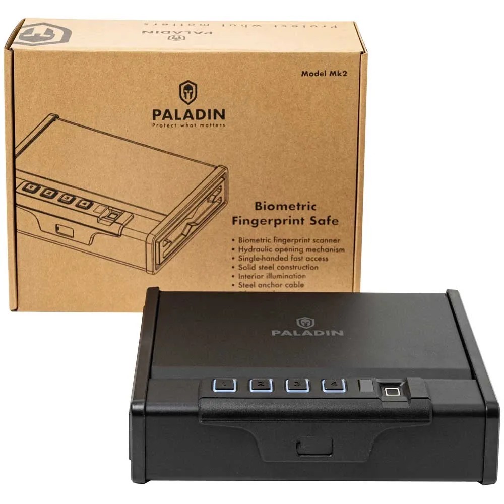 Der aus hochwertigem Sicherheitsstahl hergestellte biometrische Fingerprint-Safe von Paladin schützt Ihre Schusswaffen, Schmuck und Wertsachen nicht nur vor unbefugtem Zugriff, sondern auch vor neugierigen Kinderhänden. Der Tresor ist zur Aufbewahrung von bis zu zwei Handfeuerwaffen ausgelegt, sodass Sie Ihre Waffen verantwortungsbewusst und vor Kindern geschützt aufbewahren können. Dank Schnellzugriffsfunktion mit Fingerabdruck-Scanner und automatischem Gasdruckfeder-Öffnungssystem sind Ihre Schusswaffen innerhalb von Sekunden abrufbereit, was den Paladin MK2 ideal für Heim-Verteidigungssituationen macht.