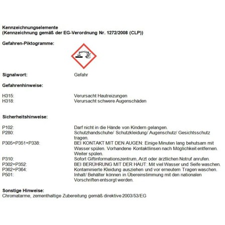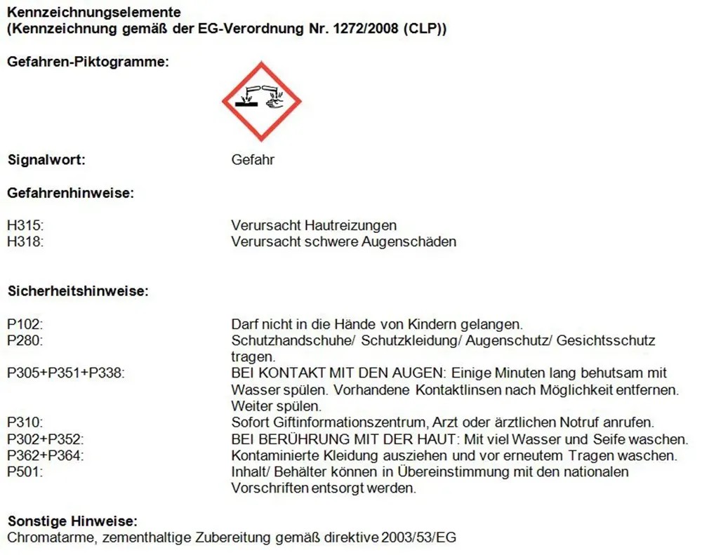 Ergiebigkeit: ca. 12,5 l Frischmörtel für ca. 0,3 m²