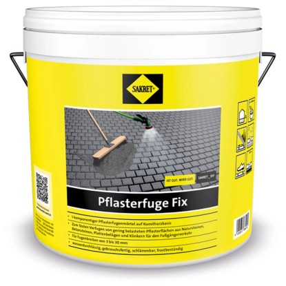 Die Sakret Pflasterfuge Fix ist ein 1-komponentiger Pflasterfugenmörtel zum wasserdurchlässigen, festen Verfugen von gering belasteten Alt- oder Neupflasterflächen aus Natursteinen, Betonsteinen, Plattenbelägen und Klinkern für den Fussgängerverkehr. Er ist für Fugenbreiten von 3 bis 30 mm geeignet.Produktmerkmale