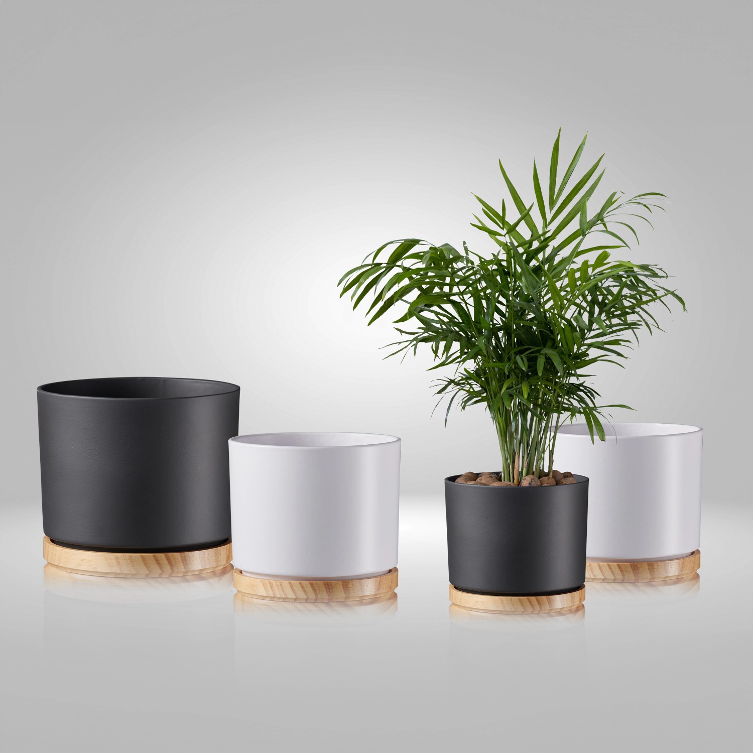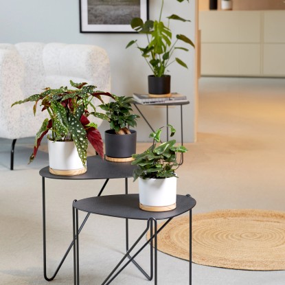 Die Übertöpfe der Serie Oslo von Söndgen Keramik zeigen einen besonderen Materialmix aus Keramik in dezenten Farben und Holz. Ihr Design steht für angenehme Zurückhaltung und nordische Eleganz.