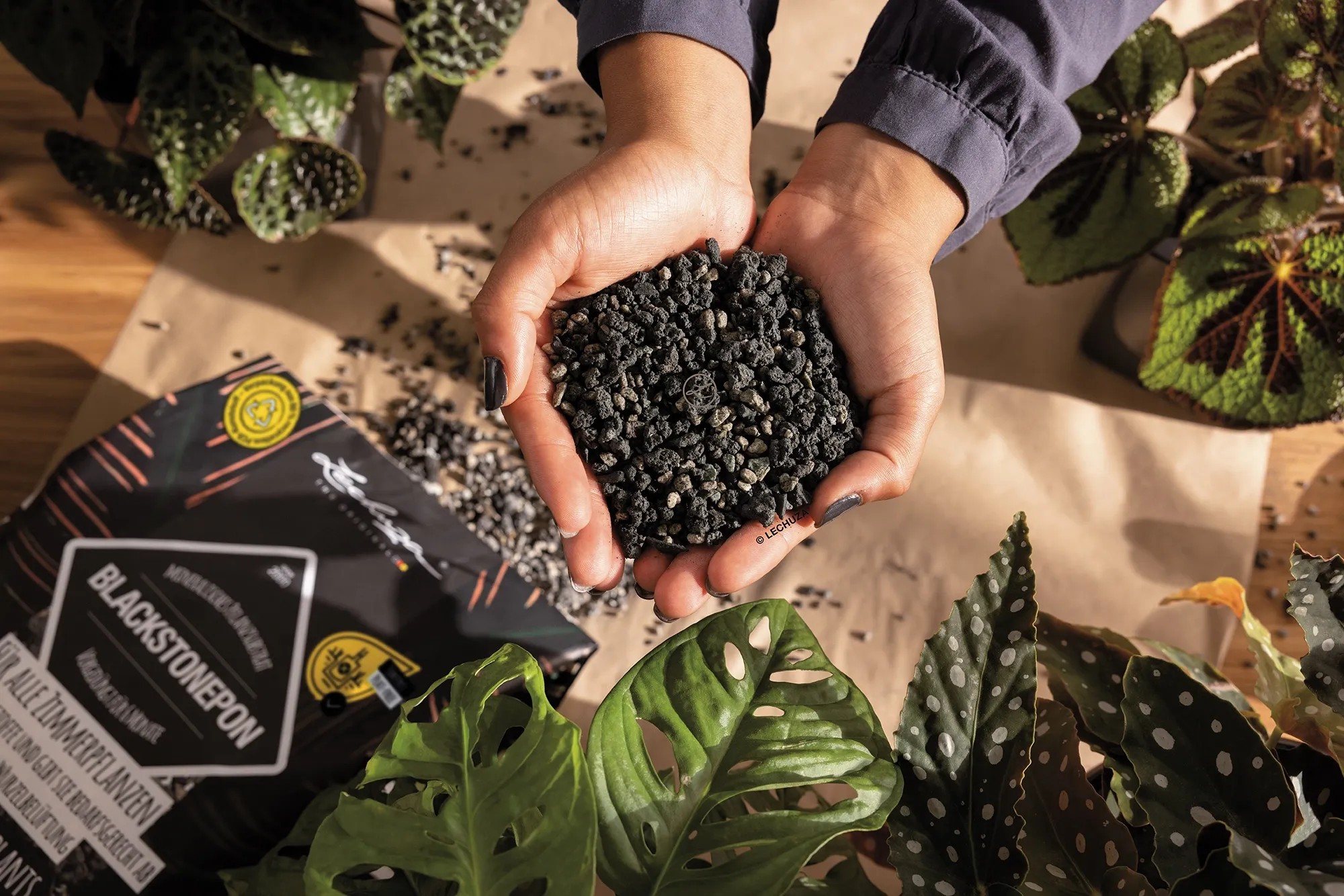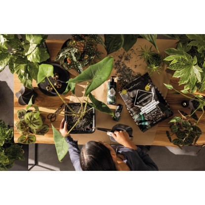 Das organisch-mineralische Pflanzsubstrat eignet sich für die Komplettbepflanzung von Zimmerpflanzen oder als Zierschicht. Die aussergewöhnliche dunkle Farbe erhält das Substrat durch schwarze Lava und Pflanzenkohle. Der hohe mineralische Anteil vermeidet Staunässe und sorgt für eine optimale Wurzelbelüftung. Zudem speichert das Substrat Nährstoffe und gibt sie bedarfsgerecht wieder ab.