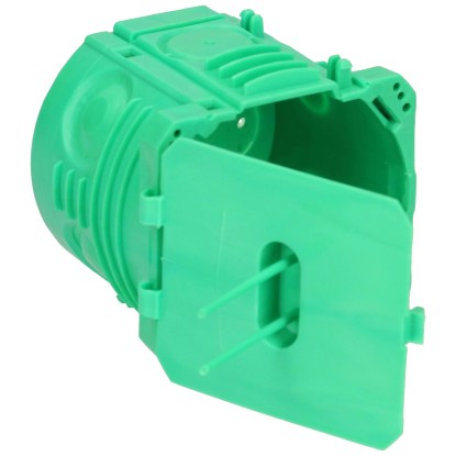 Die Unterputz-Dose Easy-Click hat die Grösse 1. Sie hat die Farbe grün und besteht aus Thermoplast. Die Dose hat einen ein druckbarer Schutzdeckel. Das Bohrloch hat 71 mm.