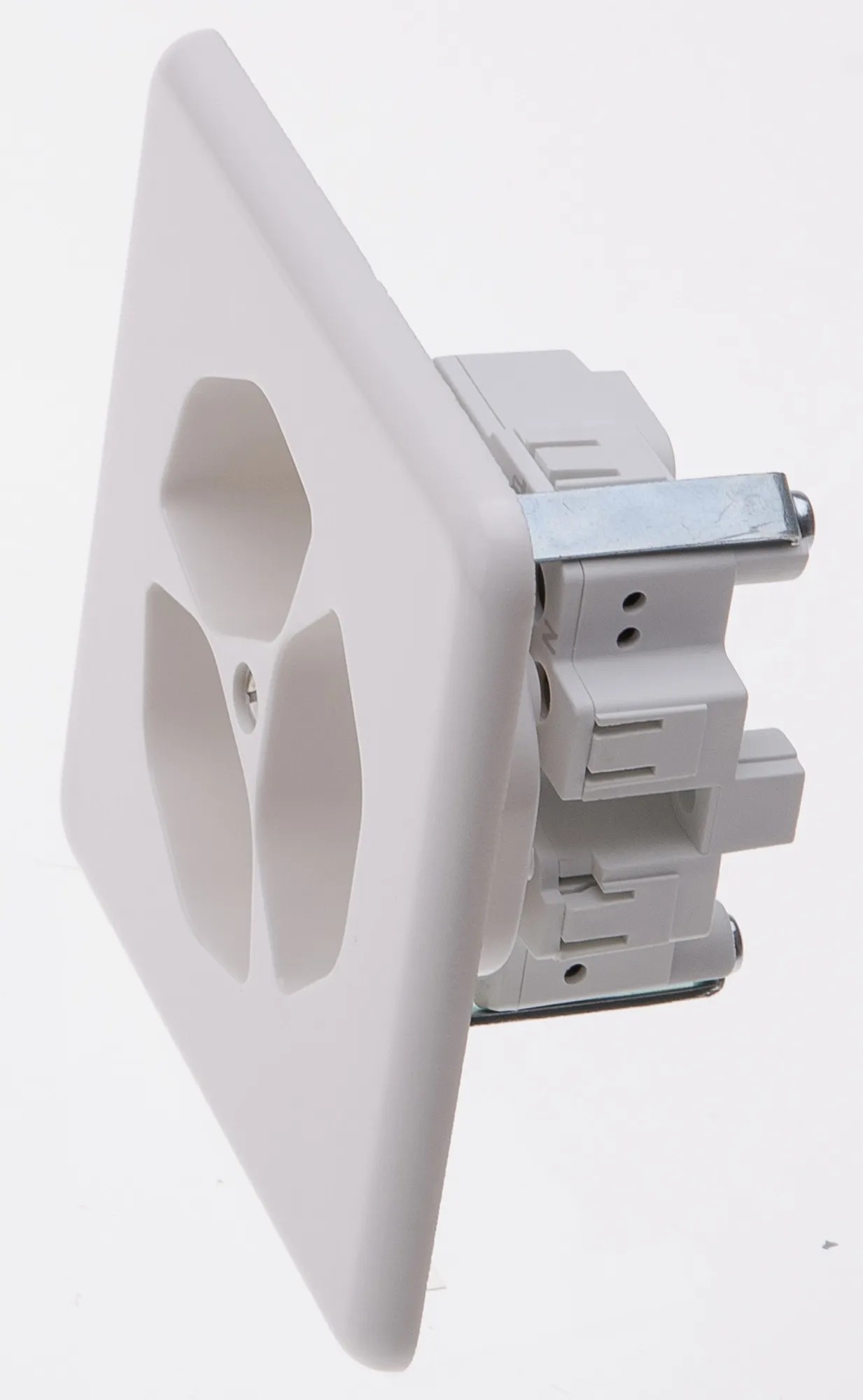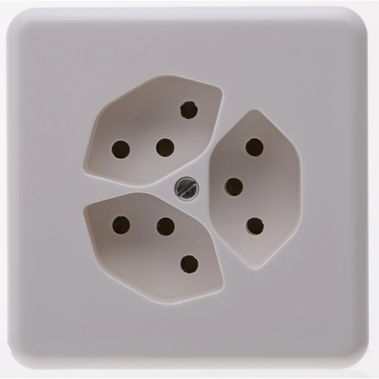 Die Unterputzsteckdose ist weiss. Sie hat 250 V und 10 A. Sie hat die Grösse 1. Steckdosentyp: 3 x Typ13 parallel