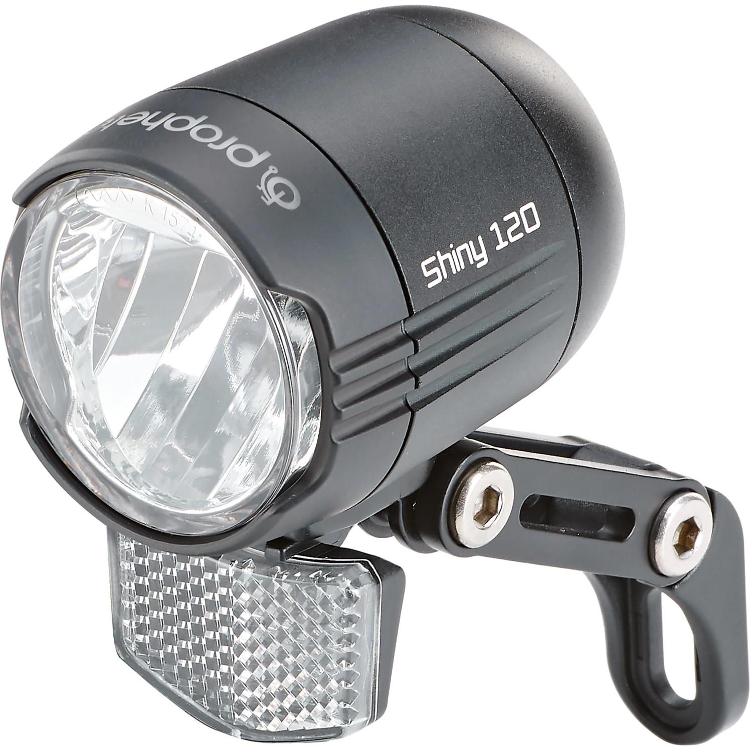 Der Prophete LED-Scheinwerfer mit 120 lx ist für E-Bikes mit 6 - 48 V geeignet. Bei dem Scheinwerfer sind Osram LEDs eingebaut. Er hat ein beleuchtetes Prophete Logo und eine seitliche Sichtbarkeit. Das Gehäuse und die Halterung des Scheinwerfers besteht aus Aluminium.