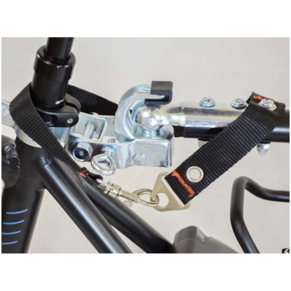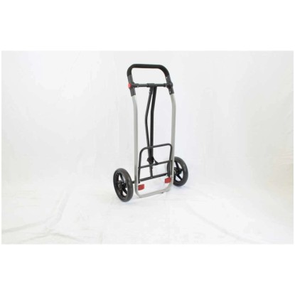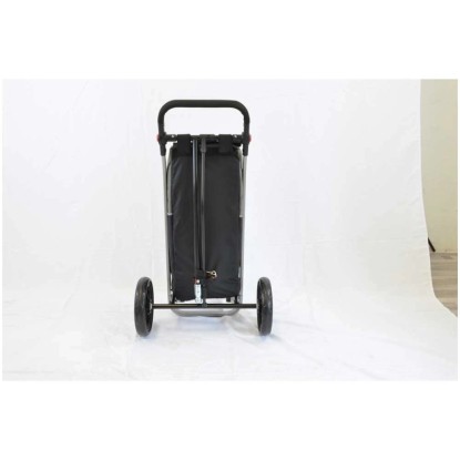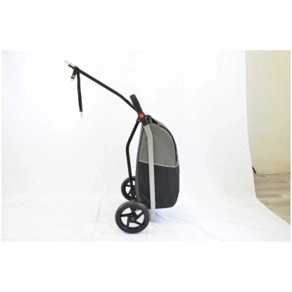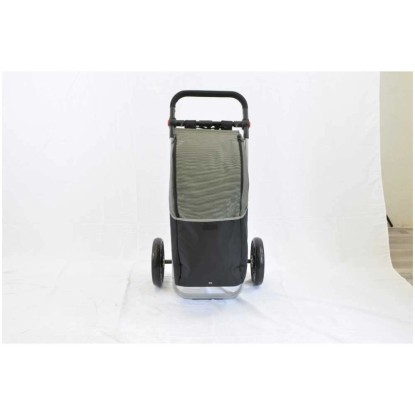 Ein sehr praktischer Fahrrad-Einkaufstrolley in der Farbe Schwarz-Grau mit 50-l-Fassungsvermögen. Die Einkaufstasche bietet Ihnen neben der Haupttasche zusätzlich seitlich zwei Einstecktaschen, eine kleine Innentasche und eine Tasche mit Reissverschluss oben. Die Einkaufstasche ist abnehmbar. Das Fahrgestell besteht aus einem Aluminiumrahmen mit Pulverbeschichtung, einer Stahldeichsel, einem 12"-EVA-Kunststoffrad (Schnellspanner) und einem weichen EVA-Handgriff. Der Trolley kann auch an herkömmlichen Anhängerkupplungen angespannt werden.