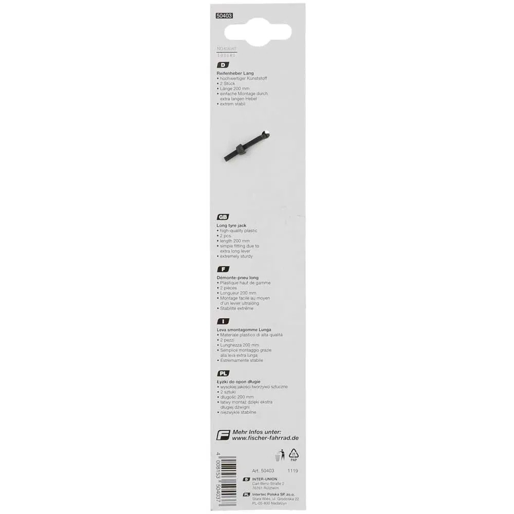 Der Fischer Fahrrad-Reifenheber besteht aus hochwertigem Kunststoff. Durch die extra langen Hebel erfolgt die Montag einfach. Inhalt: 2 Stück