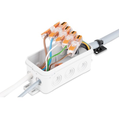 Der Durchgangsverbinder zeichnet sich durch eine transparente Farbe aus. Geeignet ist er für Drähte mit einem Durchmesser von 0,2 bis 4 mm. Dabei können Sie die Klemme unkompliziert befestigen. Im Lieferumfang sind zehn Stück enthalten.
