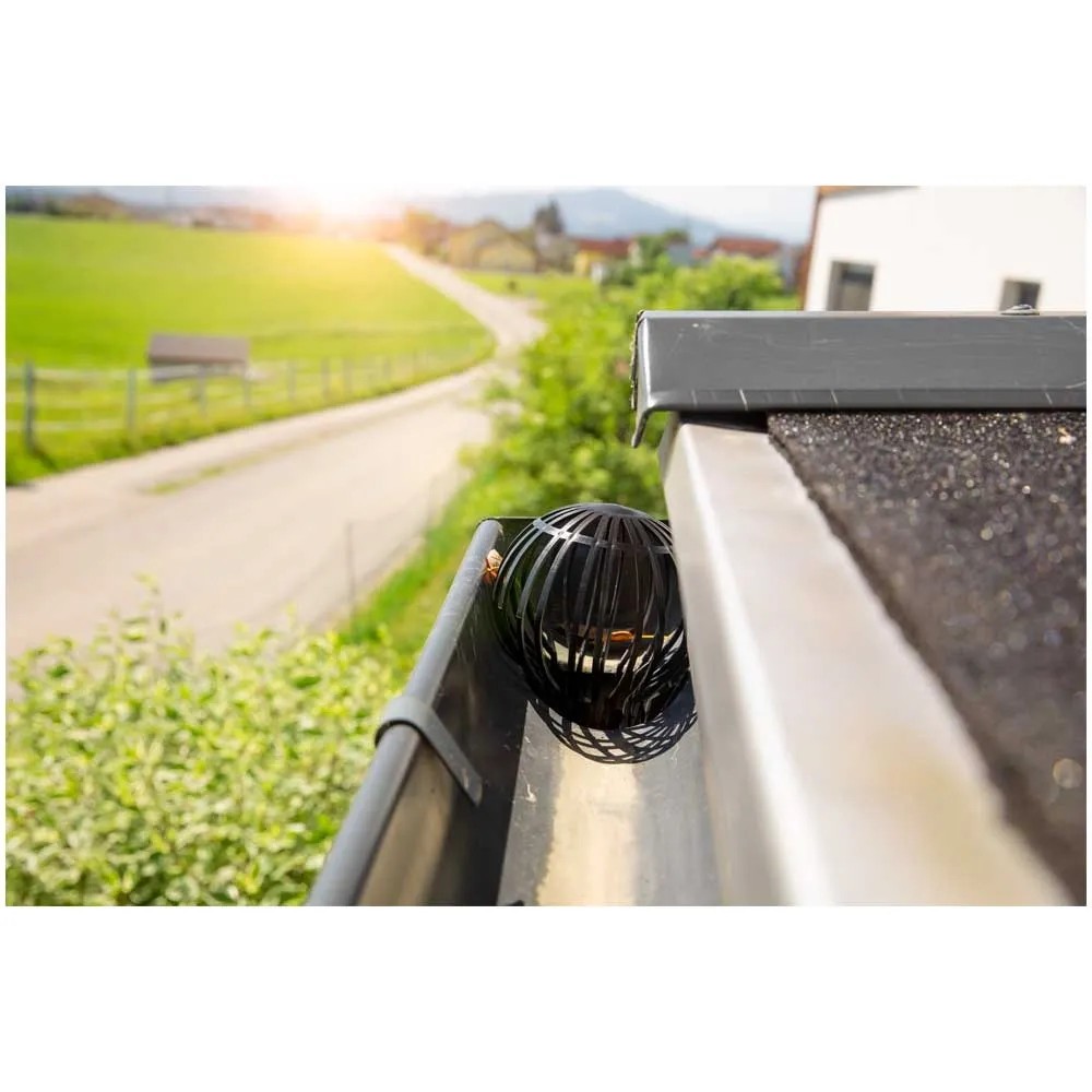Die Windhager Dachrinnen-Fallrohr-Abdeckung Cage dient zur Vorbeugung gegen verstopfte Fallrohre. Sie kann ganz einfach in der Fallrohr-Öffnung platziert werden und hält so Laub und groben Schmutz vom Fallrohr fern.