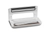Zudem bietet das Gerät eine manuelle Option für druckempfindliche Lebensmittel, eine herausnehmbare Auffangschale für ein sauberes Vakuumieren von feuchten Lebensmitteln, einen integrierten Folienschneider für individuelle Folienlängen sowie einen Schlauchanschluss zur Vakuumerzeugung in Behältern.