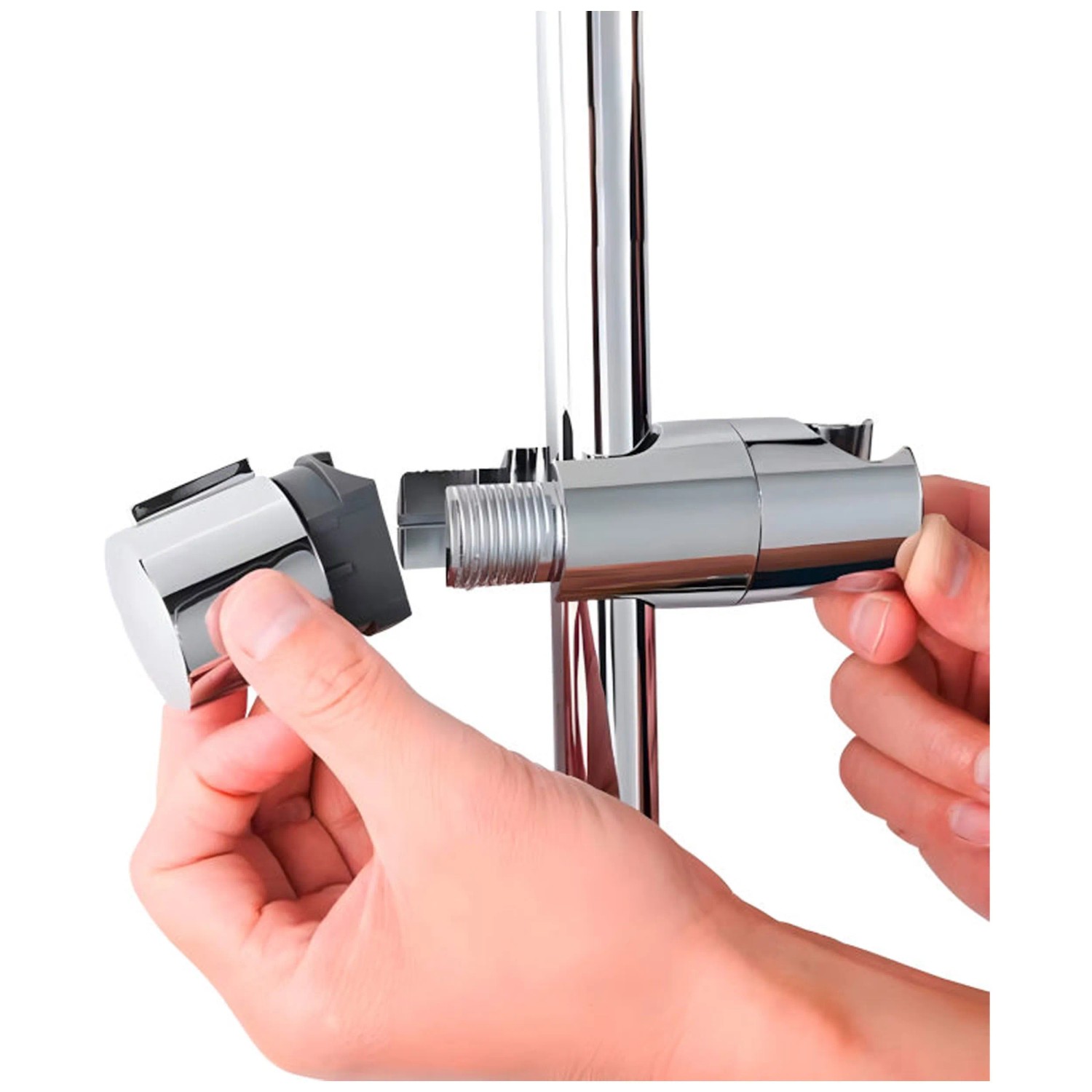 Der Wenko Brausegleiter Universal eignet sich für Duschstangen mit einem Durchmesser von 19 bis 25 mm und sorgt dafür, dass die Handbrause jederzeit bequem positioniert werden kann. Die Montage erfolgt ohne Werkzeug, da der Gleiter einfach von zwei Seiten an der Stange befestigt wird. Das Hauptteil wird an der gewünschten Stelle angebracht und das Kopfteil zur Fixierung ausgeschraubt. Dadurch bleibt der Gleiter flexibel einstellbar. Der Brausegleiter ist aus stabilem Kunststoff gefertigt und überzeugt durch seine einfache Handhabung und edle Optik mit klassischem Chrom-Finish.