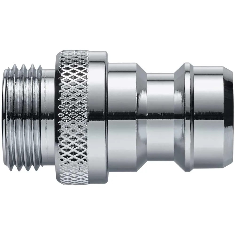 Das hochwertige, langlebige Stecksystem aus verchromtem Messing enthält den auf das Innengewinde zu montierenden Kupplungsnippel AG 3/8" mit einem Durchmesser von 16,5 mm. Es ist kompatibel zum umfangreichem Neomatic-Stecksystem.