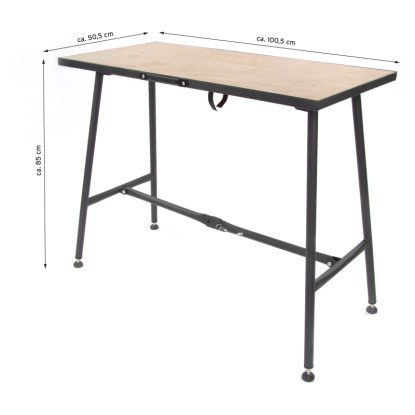 Die klappbare Werkbank BES0226F mit Holz-Arbeitsplatte mit FSC-Zertifizierung eignet sich ideal für den flexiblen Einsatz in Werkstatt und Hobbyraum. Dank der Klappfunktion lässt sie sich platzsparend verstauen und bei Bedarf schnell aufbauen. Die stabile Konstruktion sorgt für einen sicheren Stand während der Arbeit. Die Werkbank bietet eine praktische Arbeitsfläche für verschiedene handwerkliche Tätigkeiten.